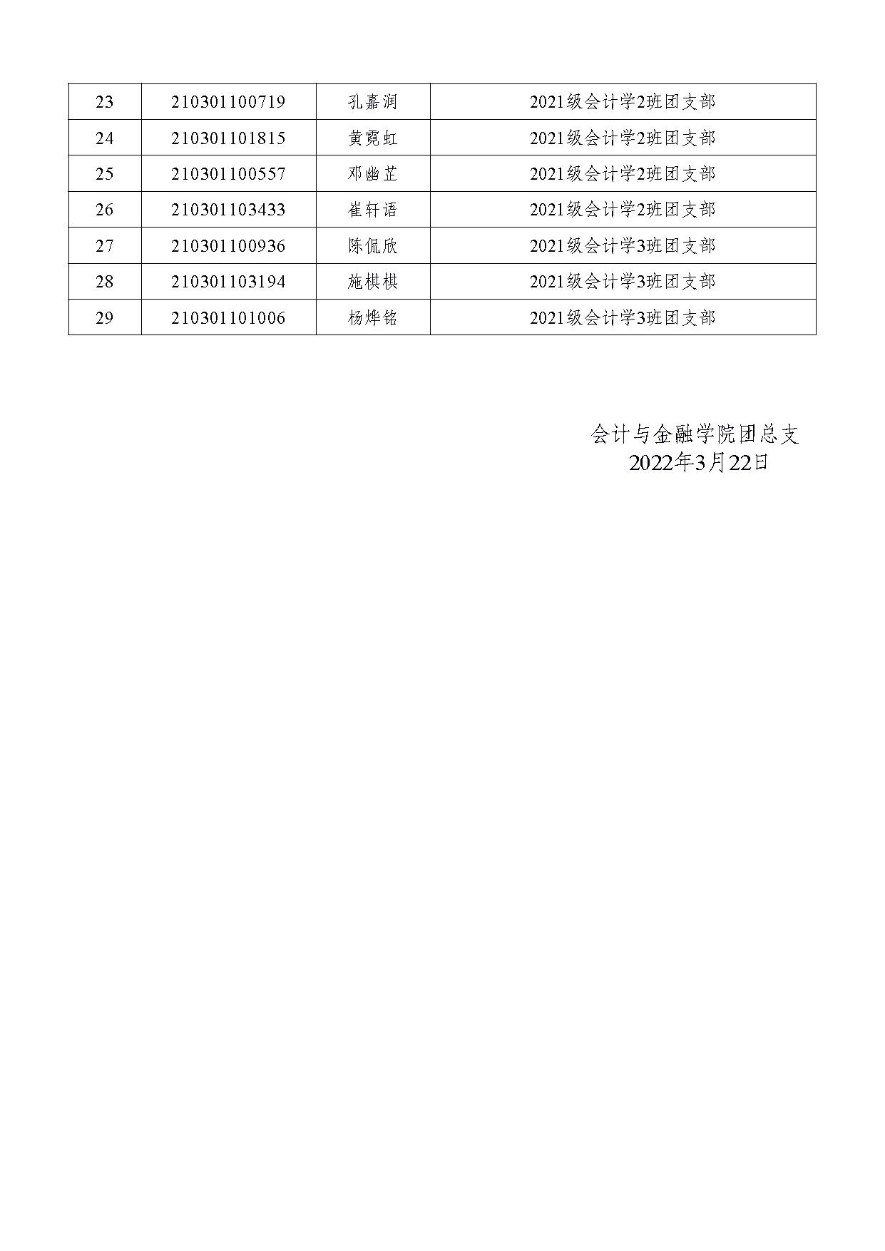 2022年上半年团员推优情况公示