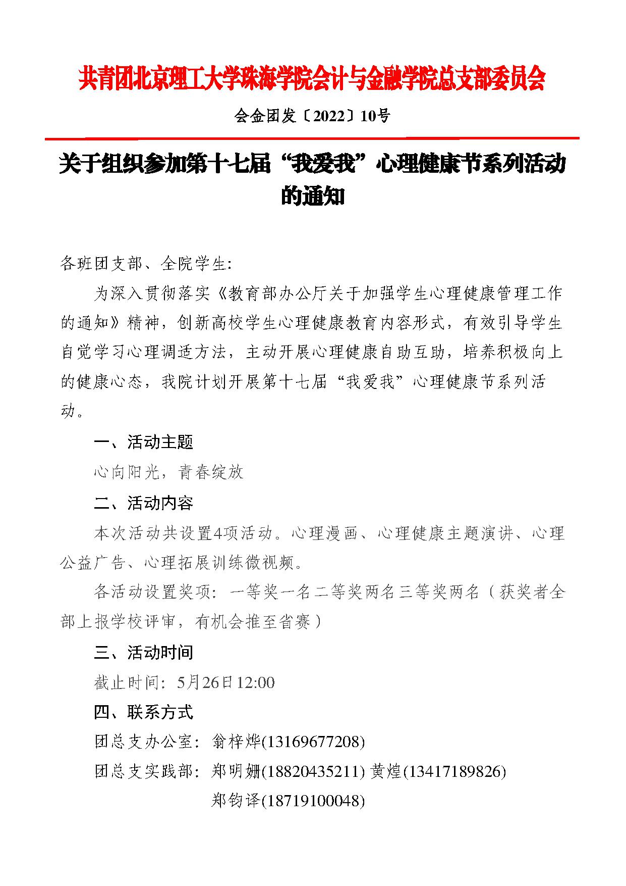 会金团发〔2022〕10号 关于组织参加第十七届“我爱我”心理健康节系列活动的通知