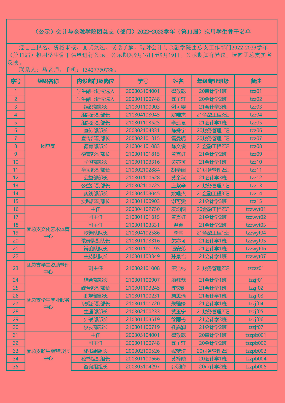 (公示)太阳成tyc33455cc团总支、员工会2022-2023学年(第11届)拟用员工骨干名单