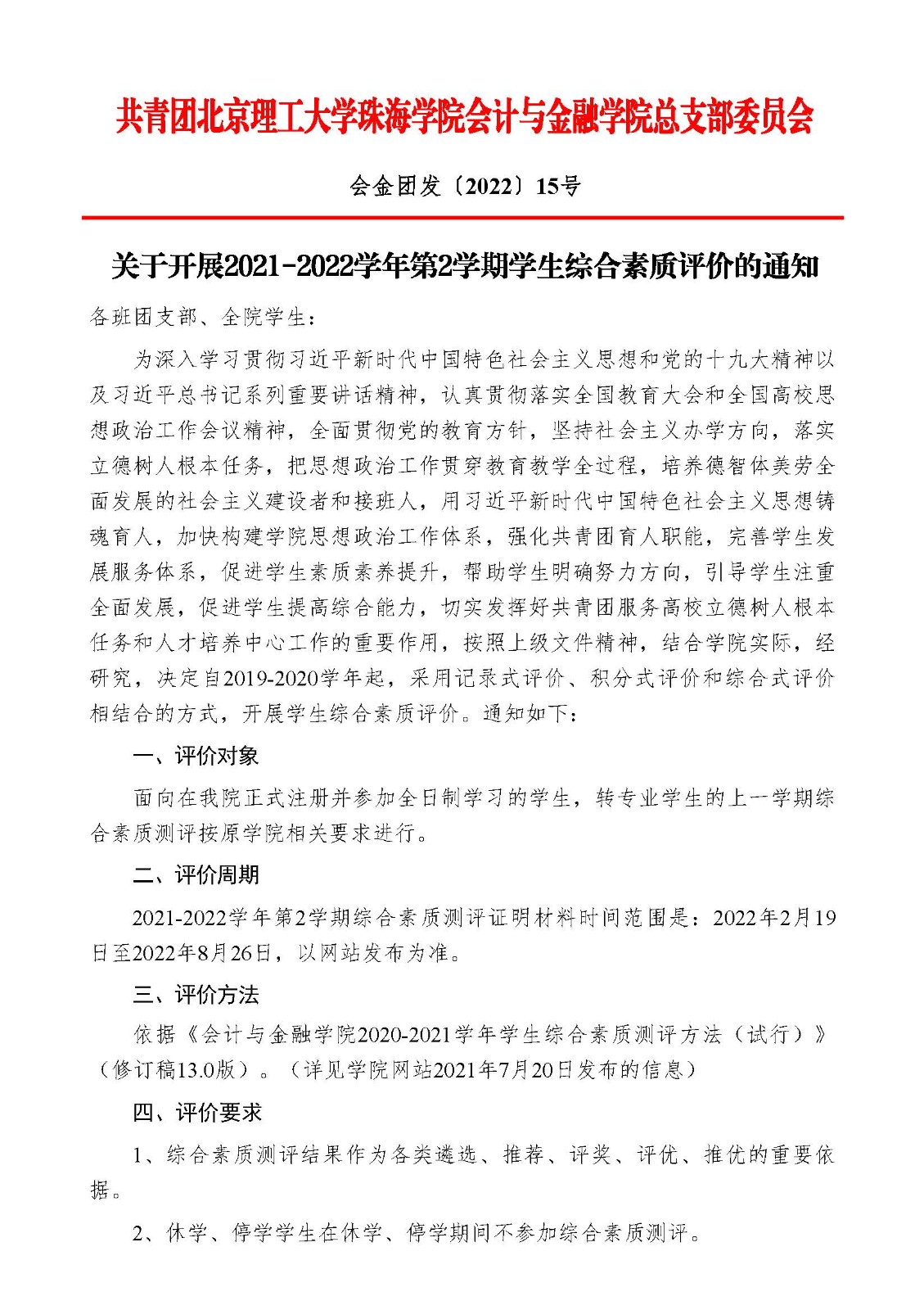 会金团发〔2022〕15号关于开展2021-2022学年第2学期员工综合素质评价的通知