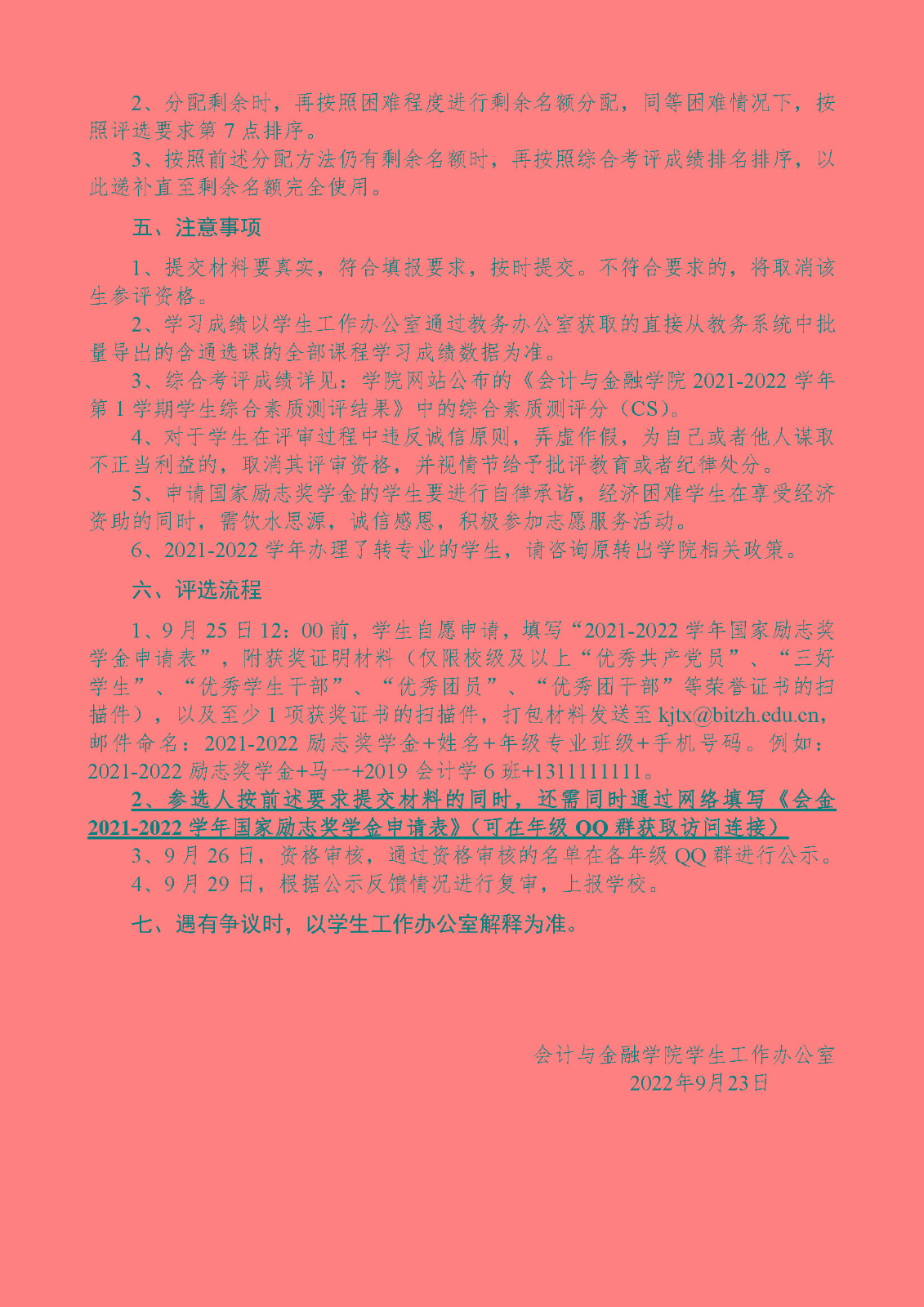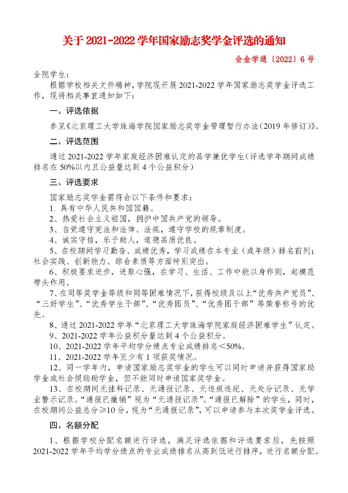 会金学通〔2021〕6号 关于2021-2022学年国家励志奖学金评选的通知