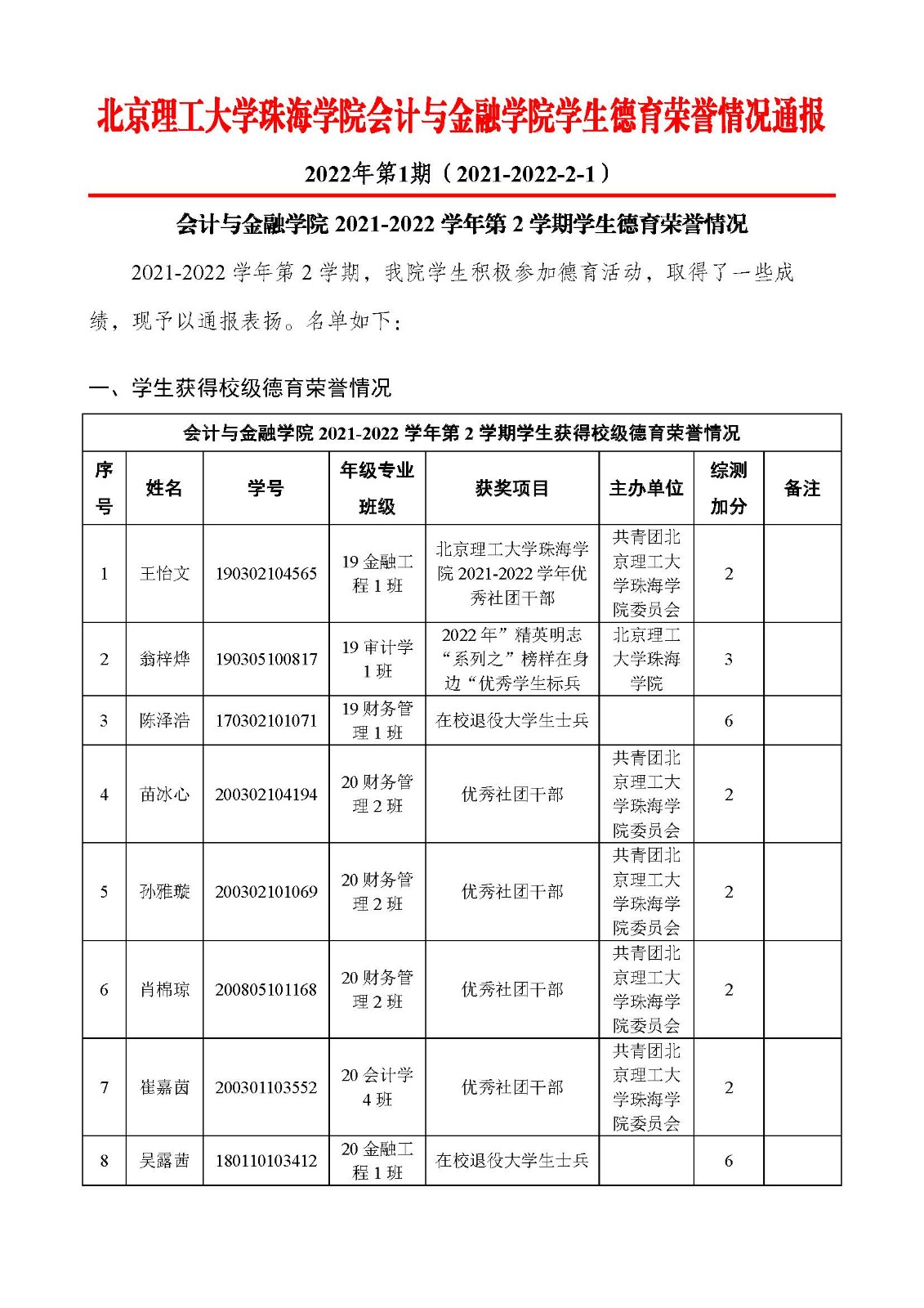 (公示)2022年第1期《太阳成tyc33455cc员工获奖情况通报》(德育获奖)