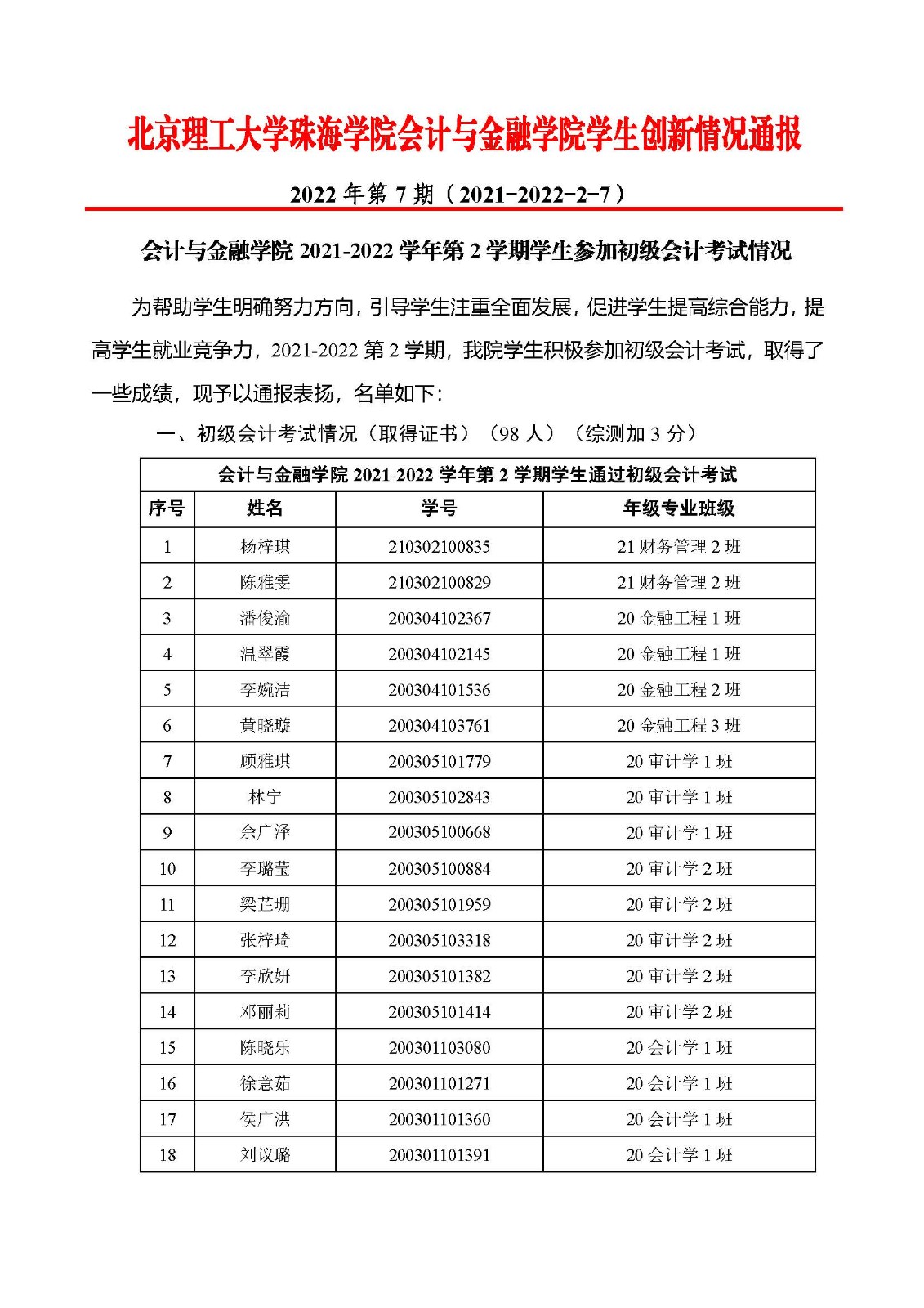 (公示)2022年第7期《太阳成tyc33455cc员工创新情况通报》(初级会计)