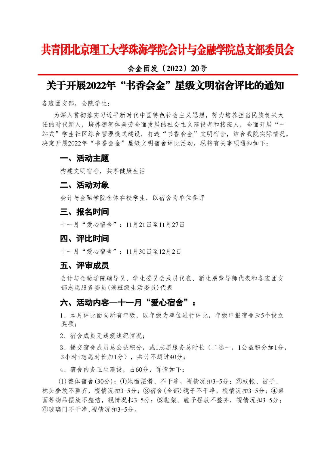 会金团发〔2022〕20号 2022—2023年第一学期“书香会金星级文明宿舍评比”