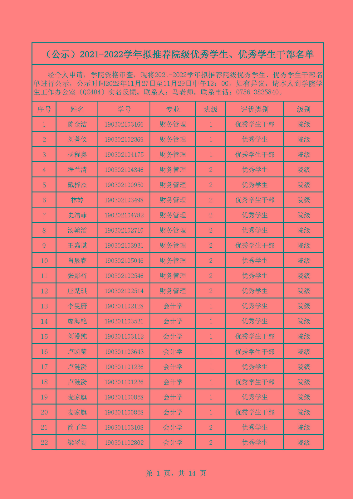 (公示)2021-2022学年拟推荐院级优秀员工、优秀员工干部名单