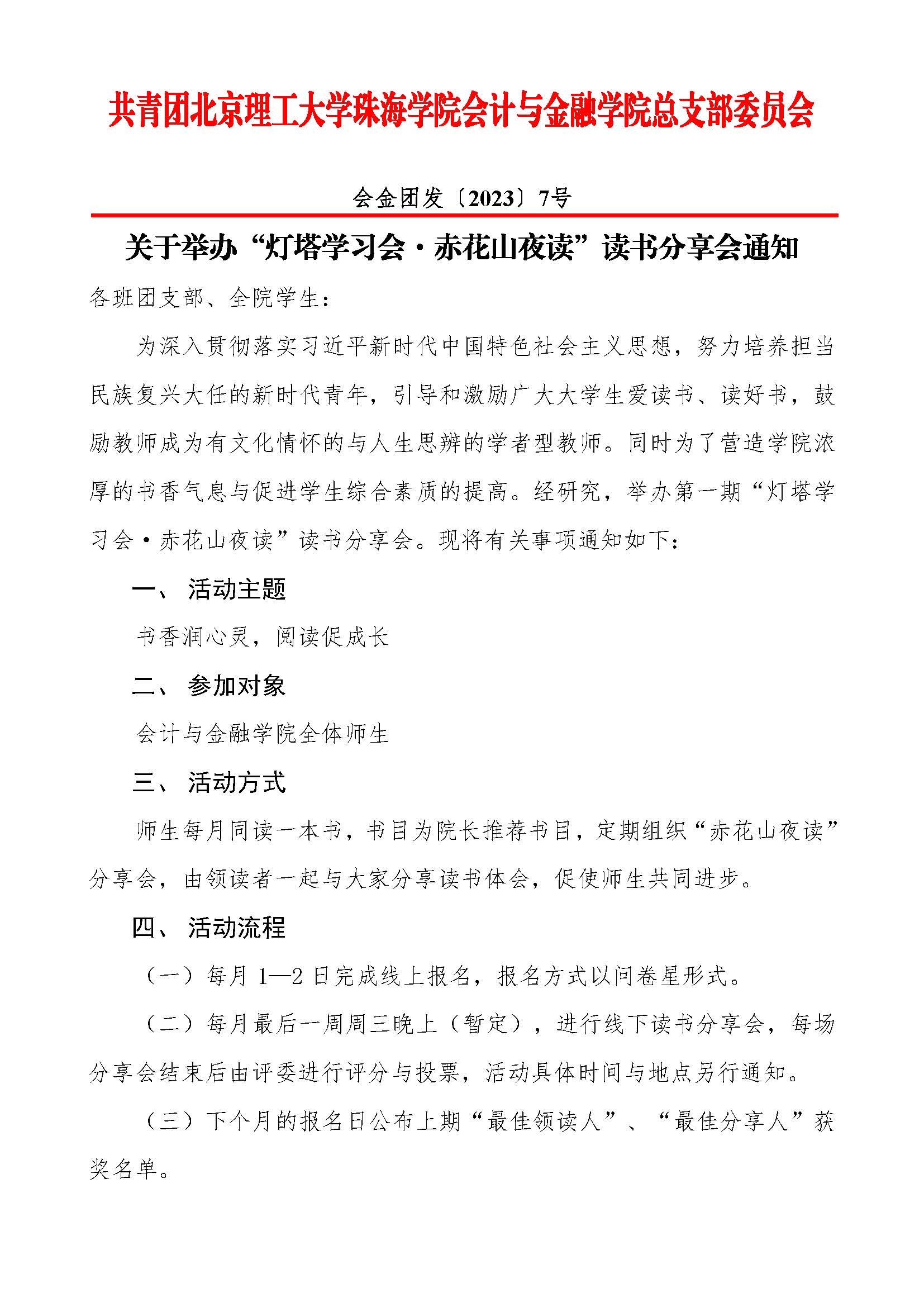 会金团发〔2023〕7号 关于举办第一期“灯塔读书会·赤花山夜读”读书分享会通知