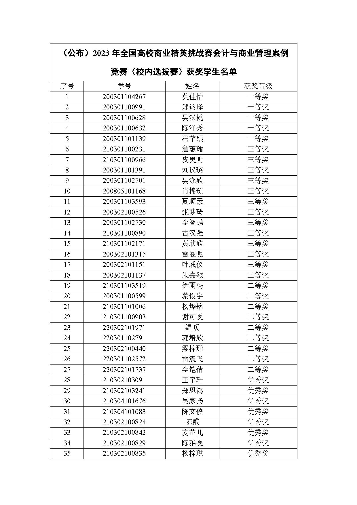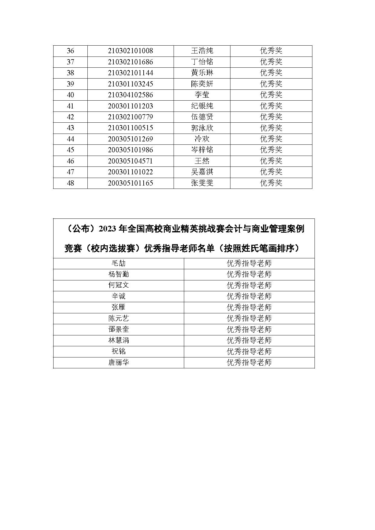 2023 年全国高校商业精英挑战赛会计与商业管理案例竞赛(校内选拔赛)获奖名单.pdf