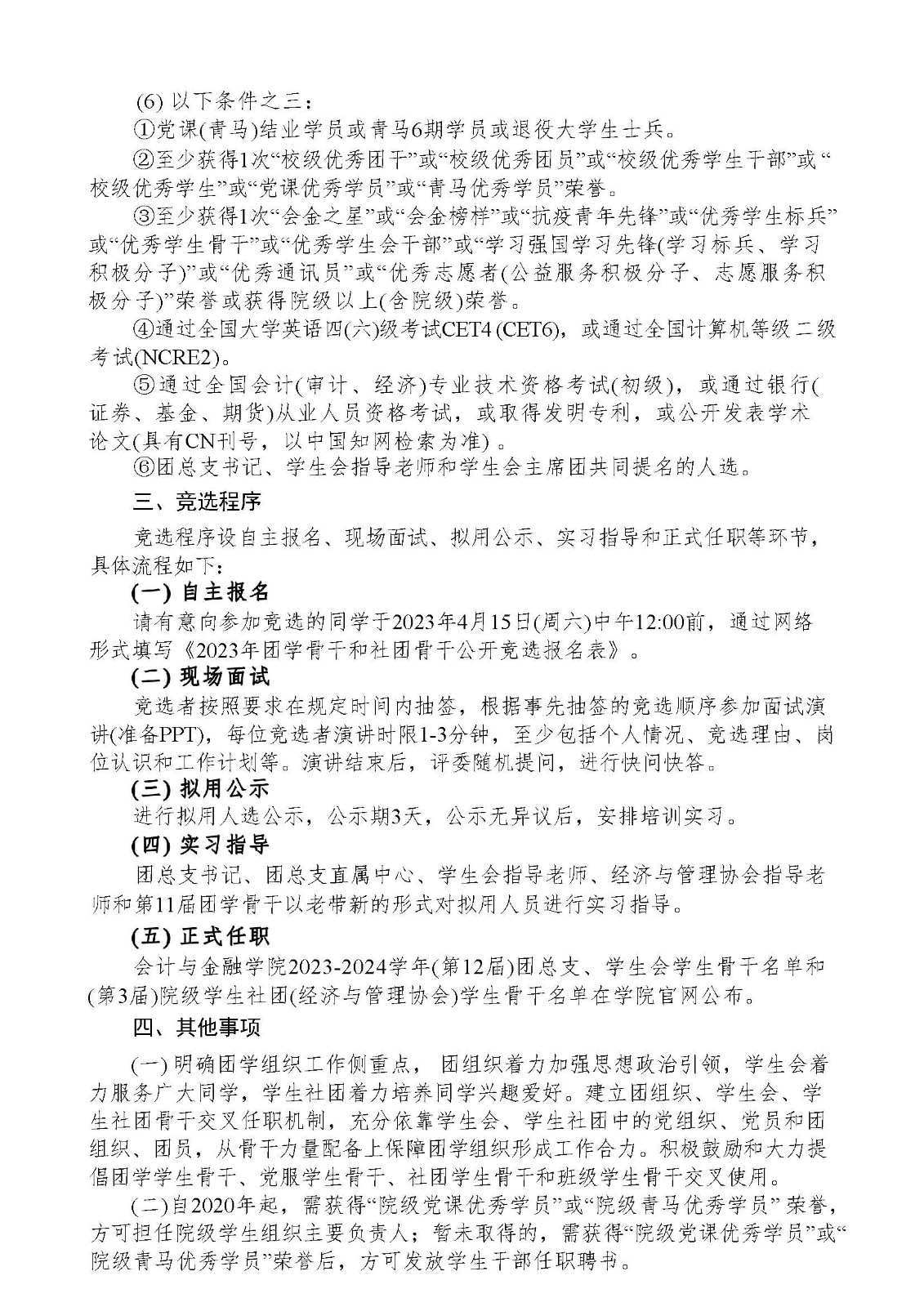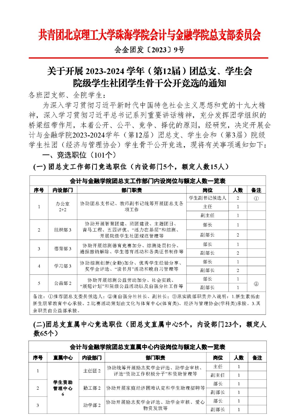 会金团发〔2023〕9号关于开展2023-2024学年(第12届)团总支、员工会和院级员工社团(经济与管理协会学)生骨干公开竞选的通知