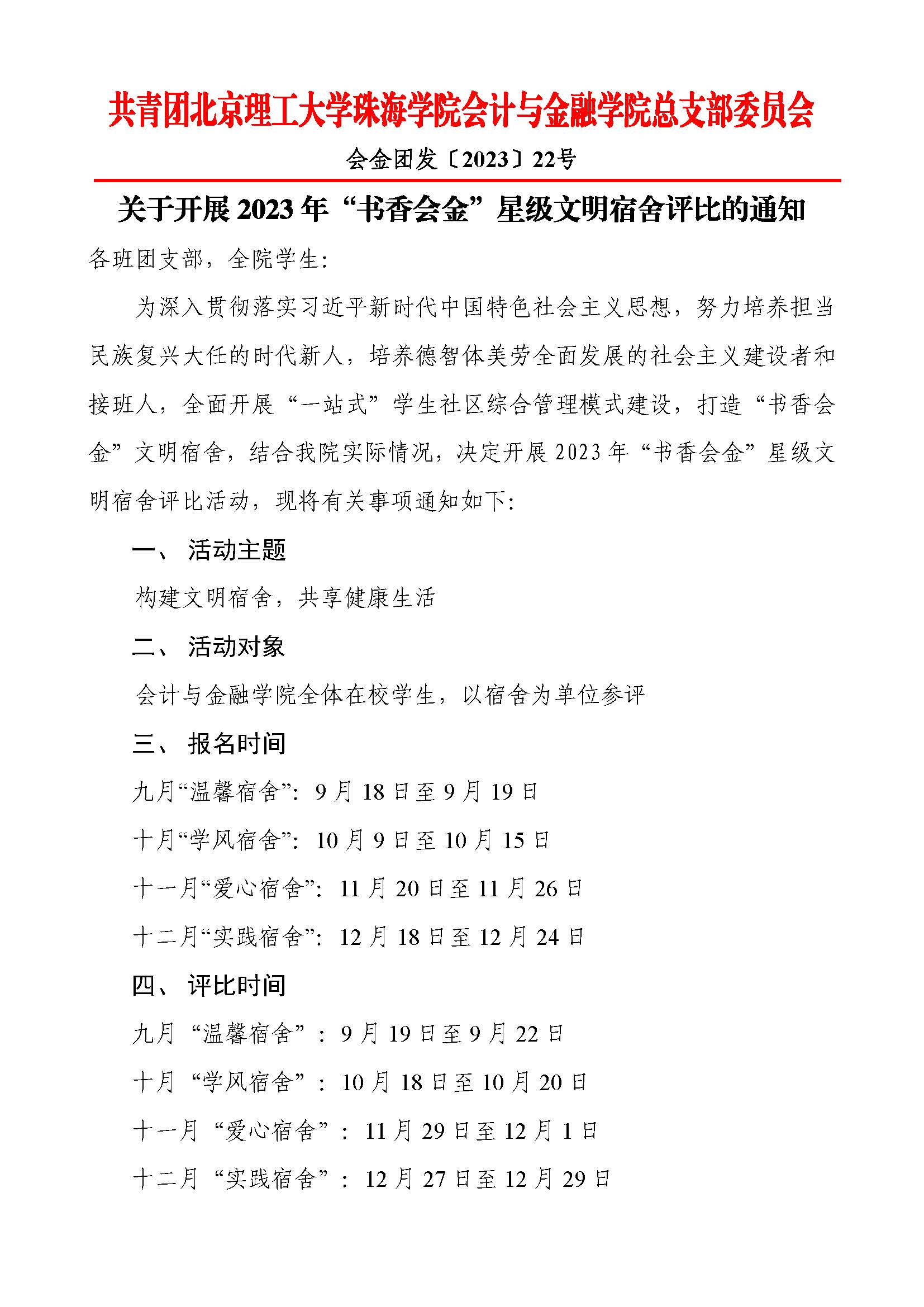 会金团发〔2023〕22号 关于开展2023年“书香会金”星级文明宿舍评比的通知