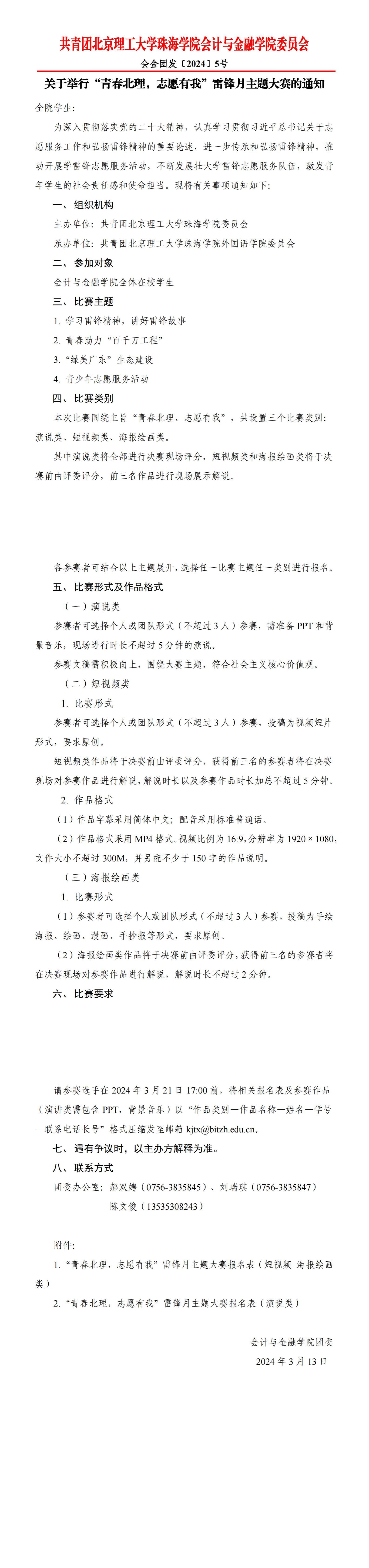会金团发〔2024〕5号 关于举行“青春北理,志愿有我”雷锋月主题大赛的通知