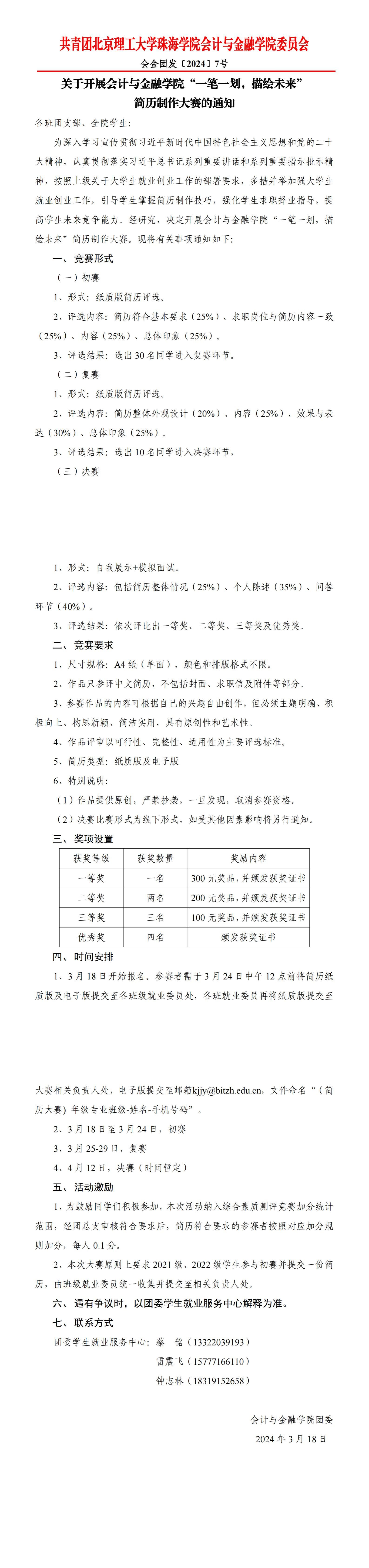 会金团发〔2024〕7号 关于开展太阳成tyc33455cc“一笔一划,描绘未来”简历制作大赛的通知