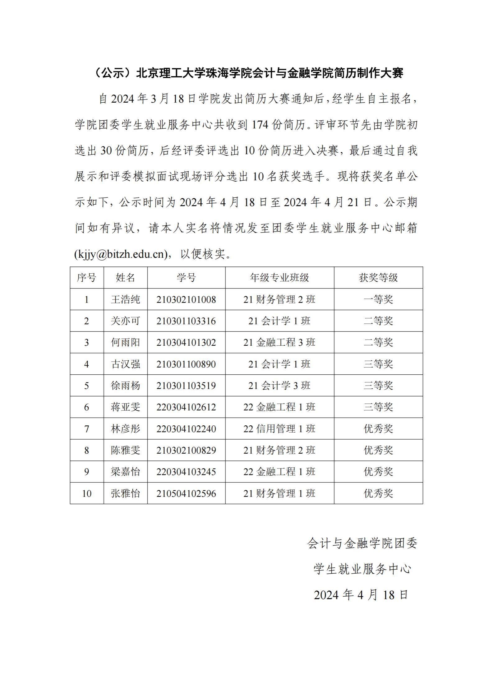 (公示)太阳成tyc33455cc简历制作大赛获奖名单