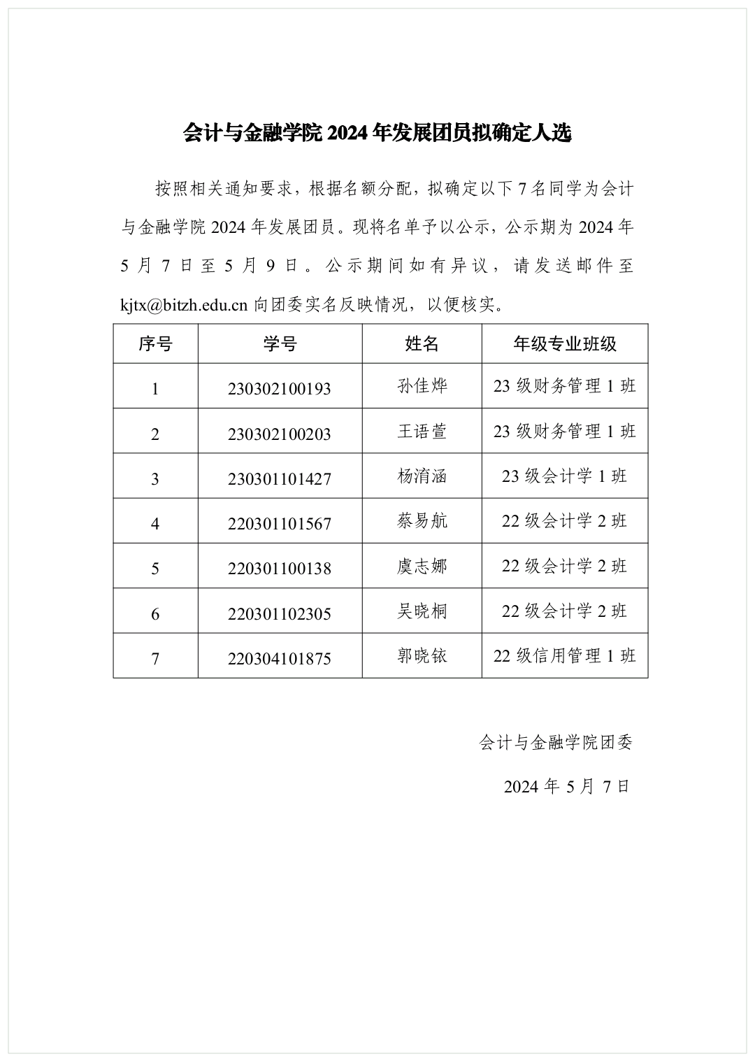 太阳成tyc33455cc 2024 年发展团员拟确定人选