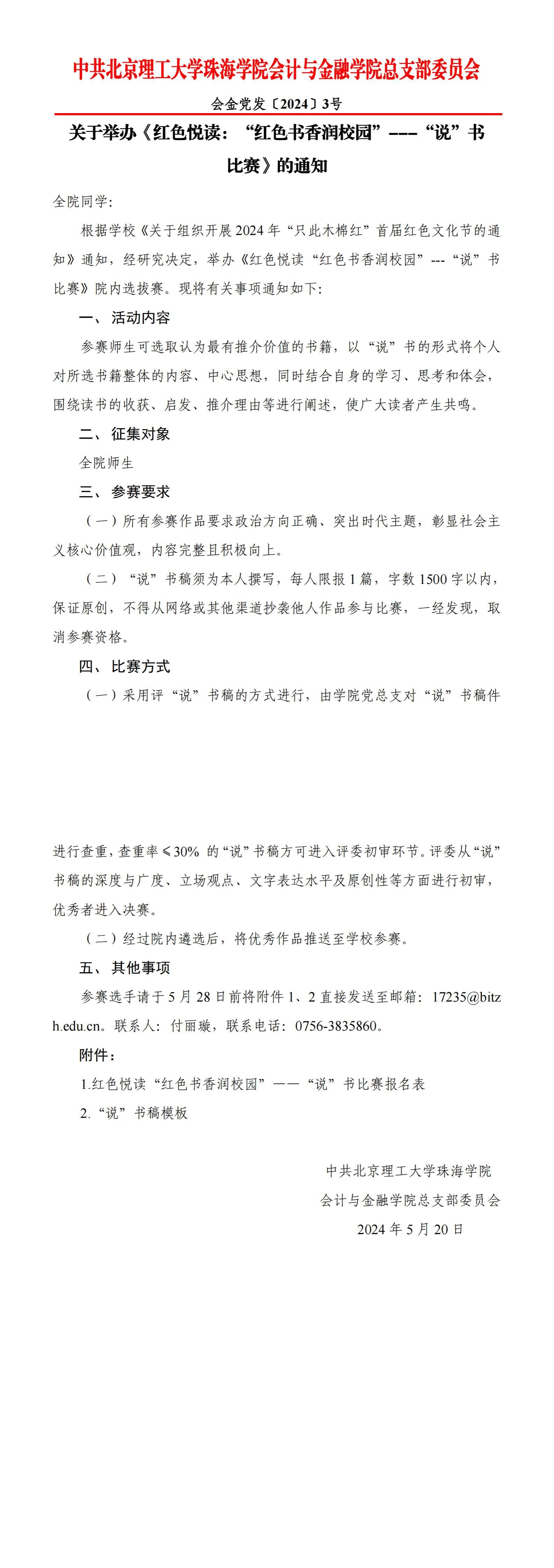 会金党发〔2024〕3号 关于举办《红色悦读:“红色书香润校园”---“说”书比赛》的通知