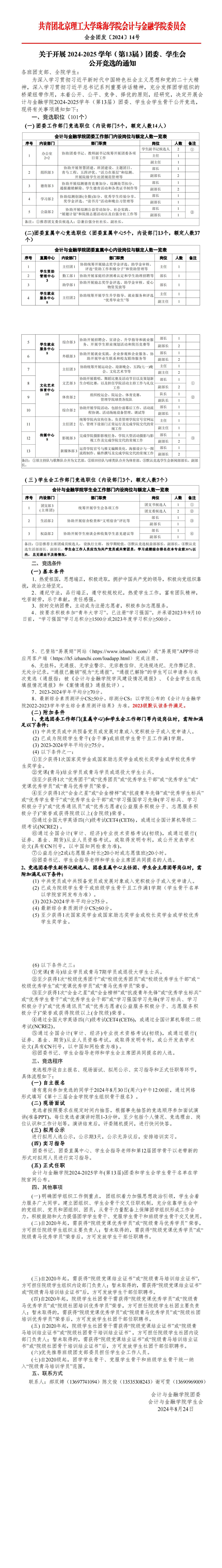会金团发〔2024〕14号 关于开展 2024-2025 学年(第13届)团委、员工会公开竞选的通知