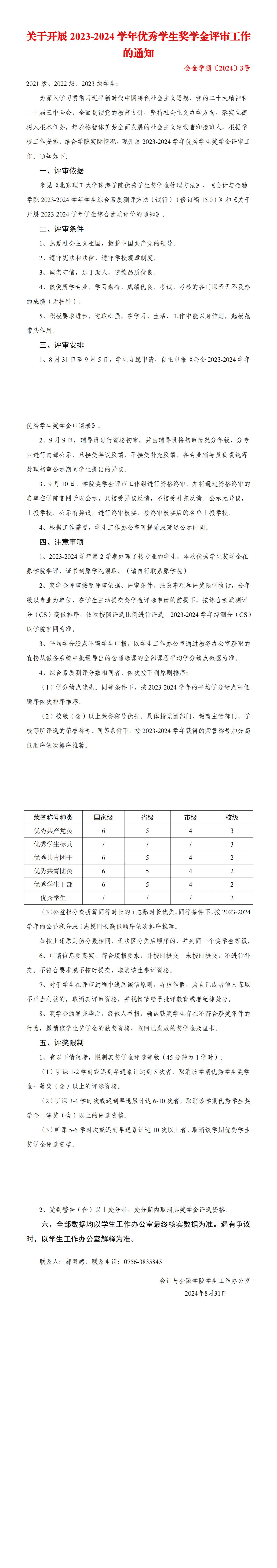 会金学通〔2024〕3号 关于开展2023-2024学年优秀员工奖学金评审工作的通知