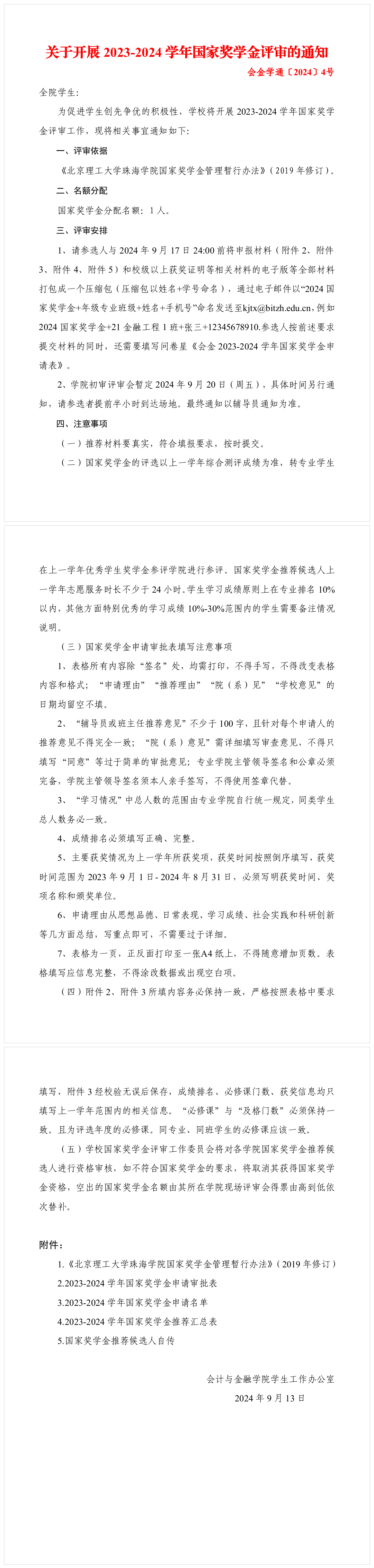 会金学通〔2024〕4号 关于开展2023-2024学年国家奖学金评审的通知