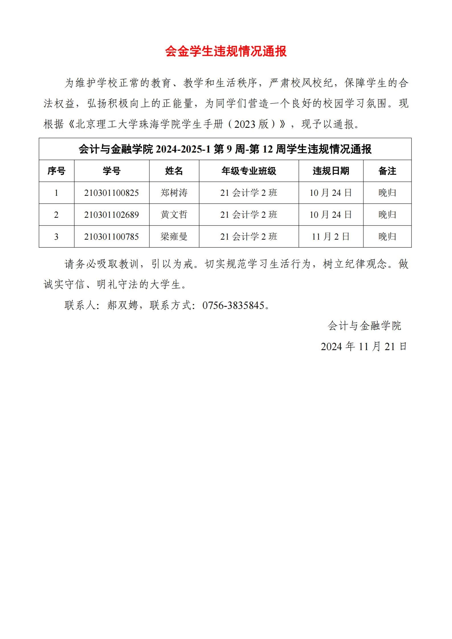 2024-2025-1第9周-第12周员工违规情况通报