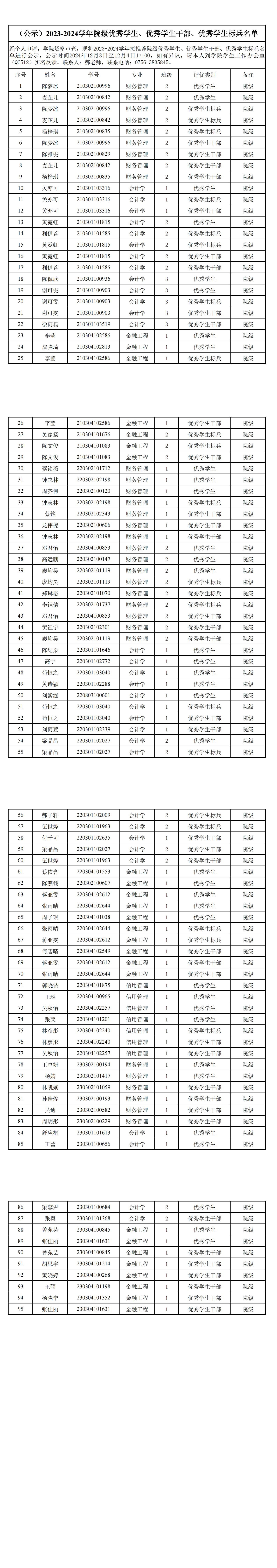 (公示)2023-2024学年院级优秀员工、优秀员工干部、优秀员工标兵名单
