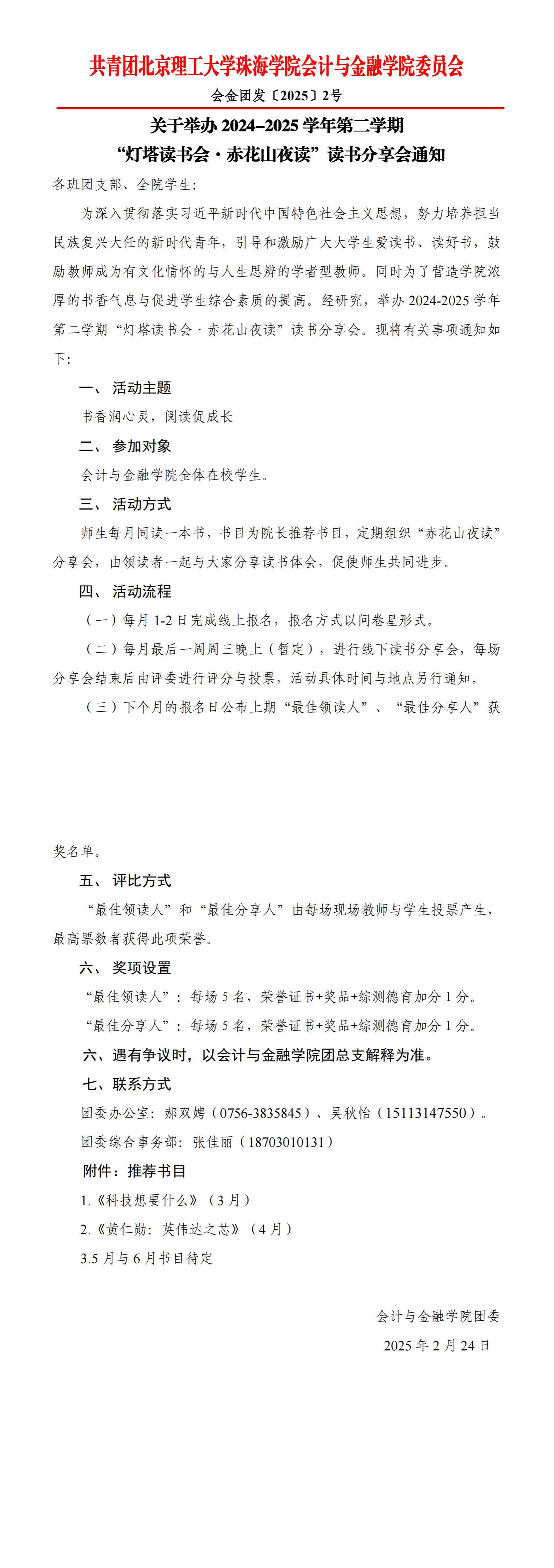会金团发〔2025〕2号 关于举办2024-2025学年第二学期“灯塔读书会·赤花山夜读”读书分享会通知