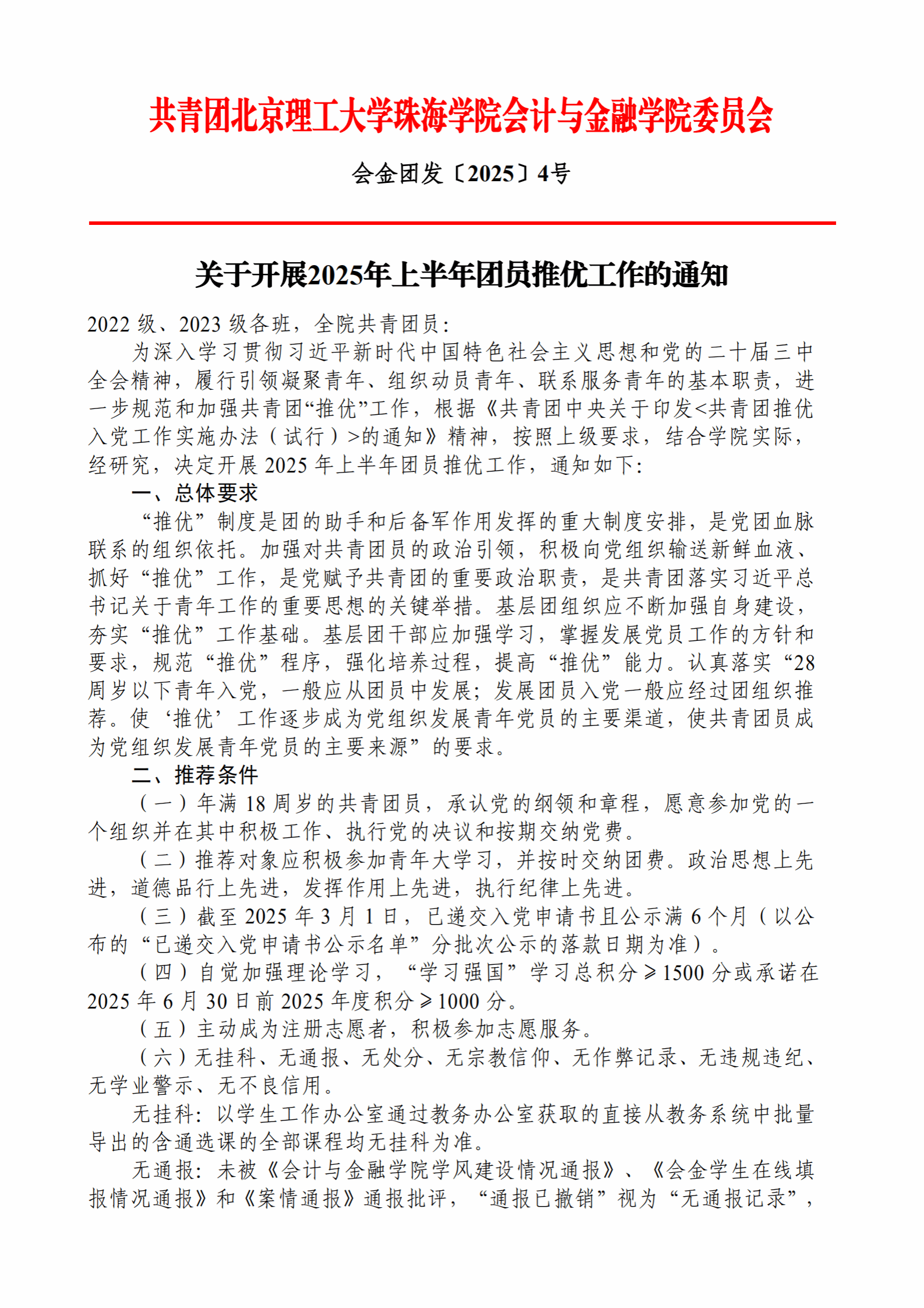 会金团发〔2025〕4号 关于开展2025年上半年团员推优工作的通知