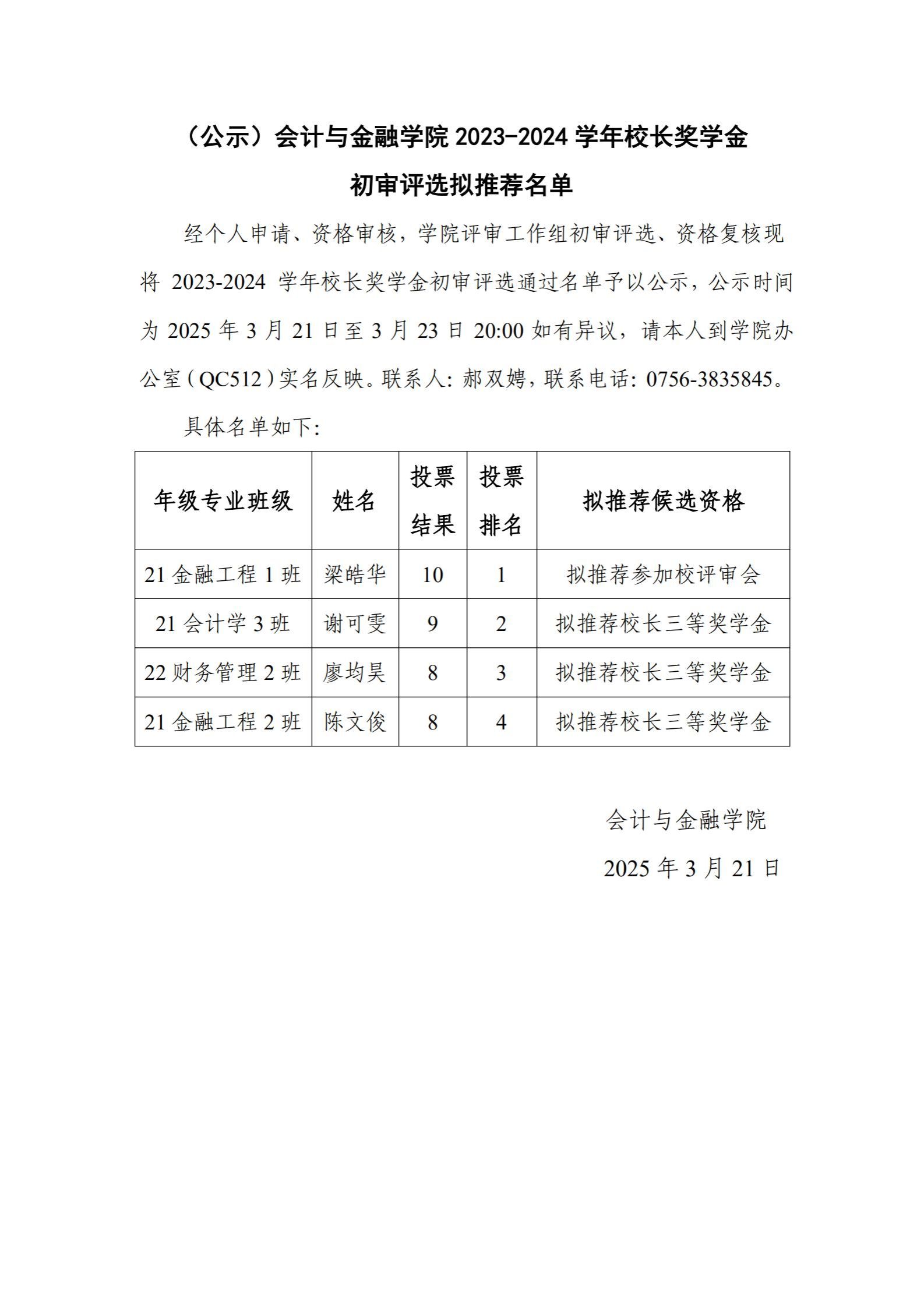 (公示)2023-2024学年董事长奖学金初审评选拟推荐名单
