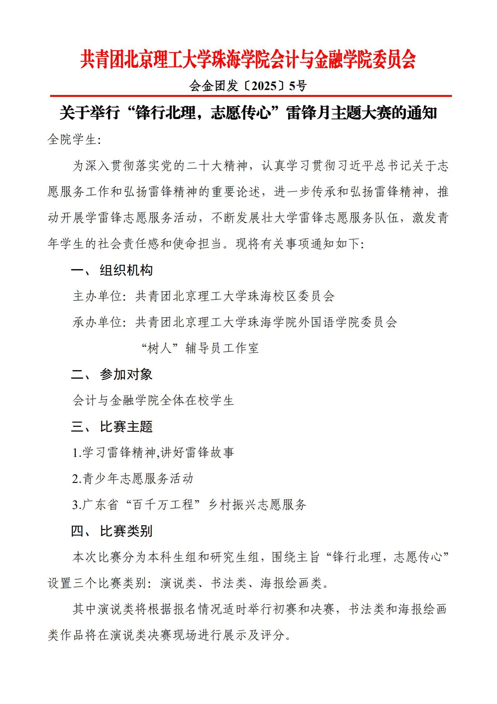 会金团发〔2025〕5号 关于举行“锋行北理,志愿传心”雷锋月主题大赛的通知