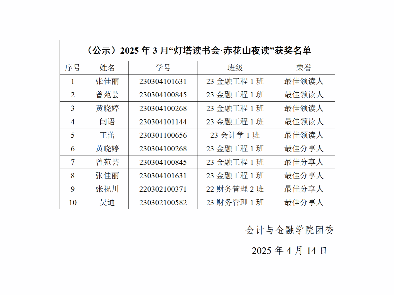 (公示)2025年3月“灯塔读书会·赤花山夜读”读书分享会获奖名单