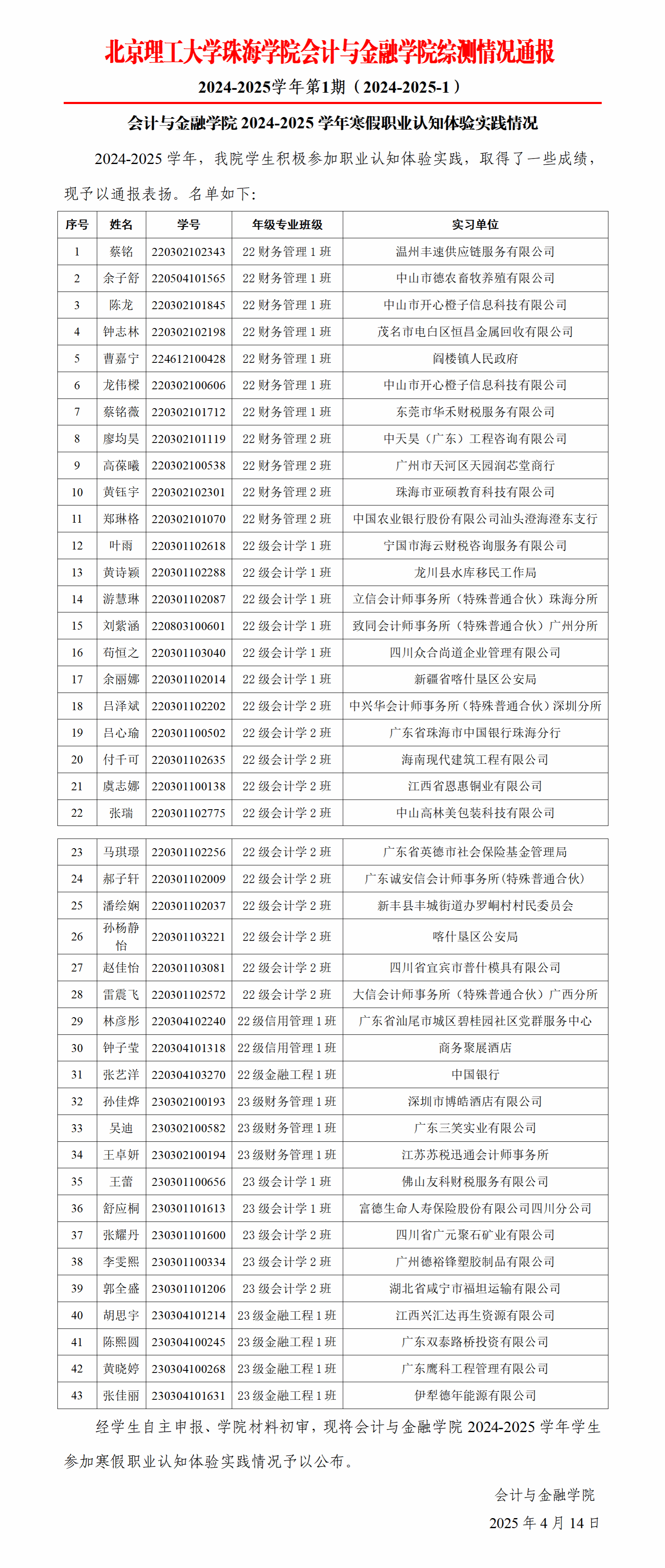 (公示)2024-2025学年第1期 太阳成tyc33455cc综测情况通报(寒假实习)