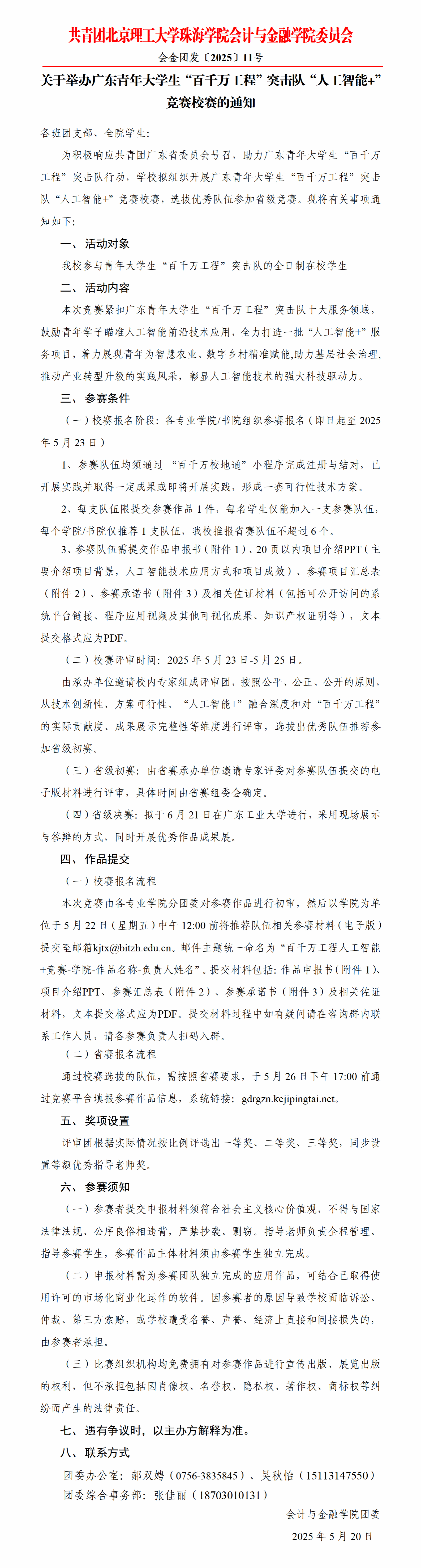 会金团发〔2025〕11号 关于举办广东青年老员工“百千万工程”突击队“人工智能 +”竞赛校赛的通知