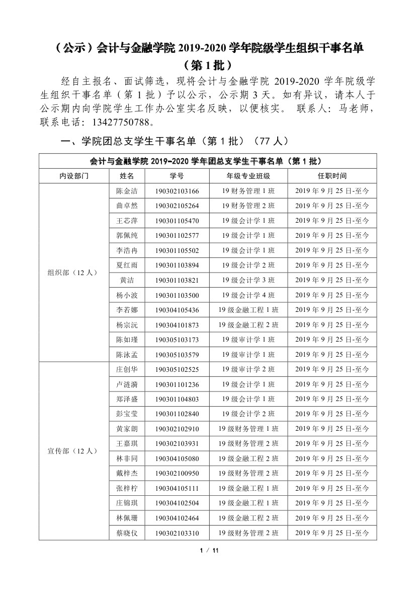 (公示)2019-2020学年院级员工组织干事名单(第1批)