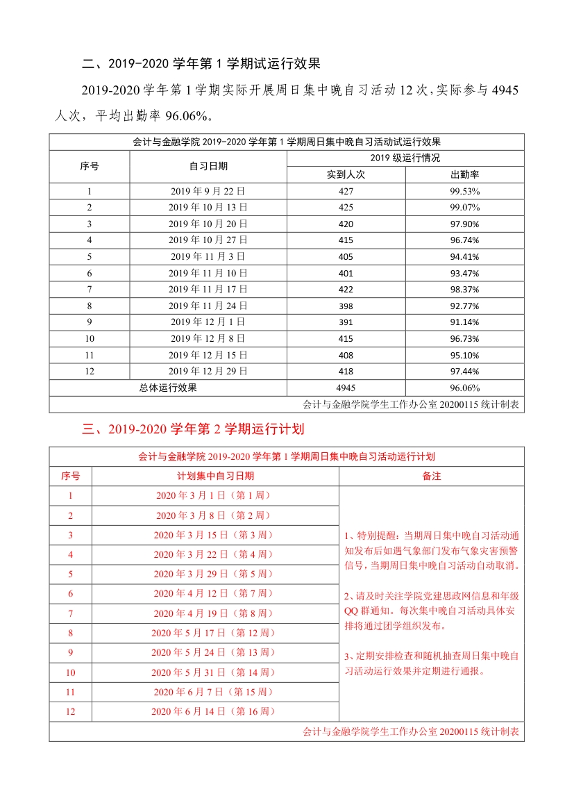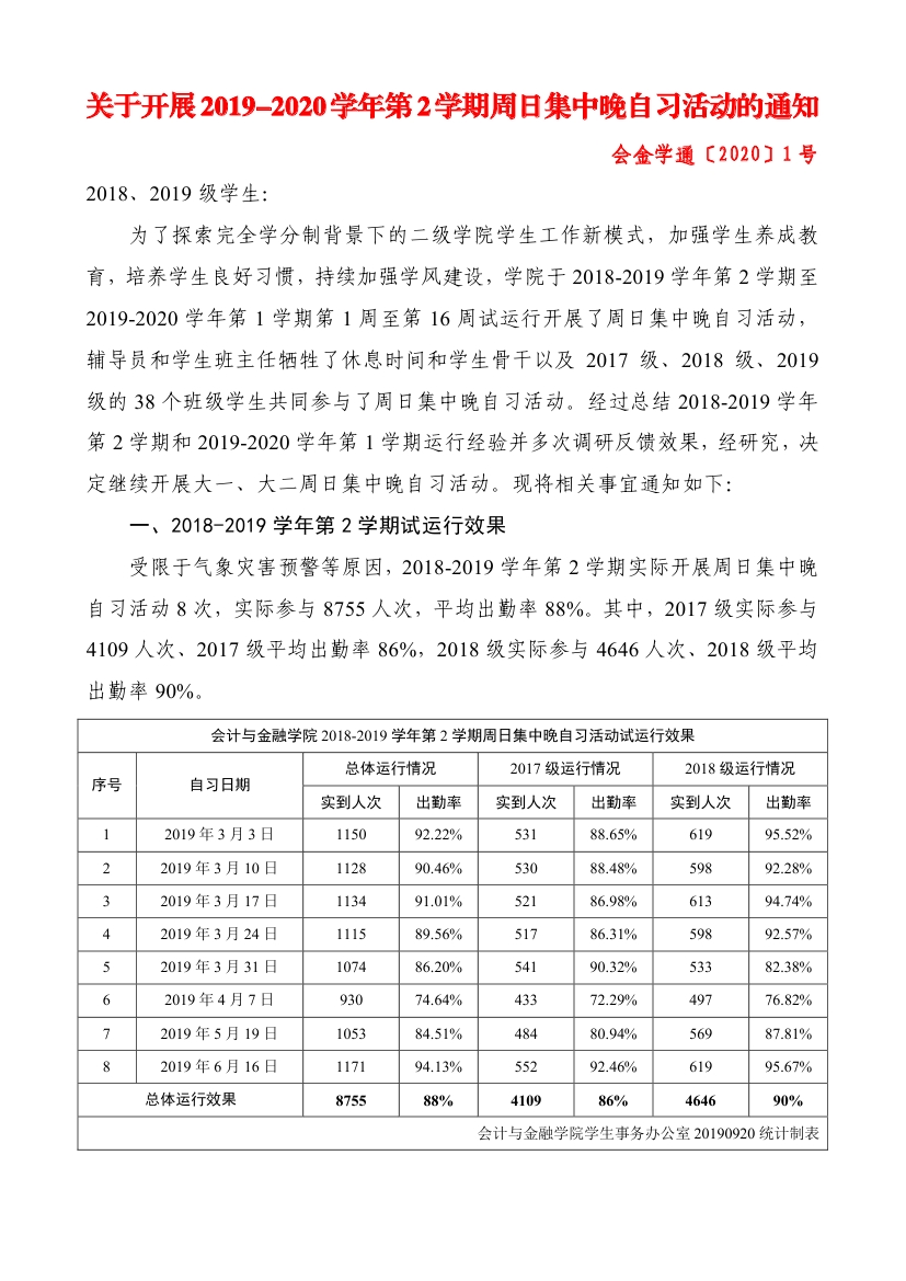 关于开展2019-2020学年第2学期周日集中晚自习活动的通知