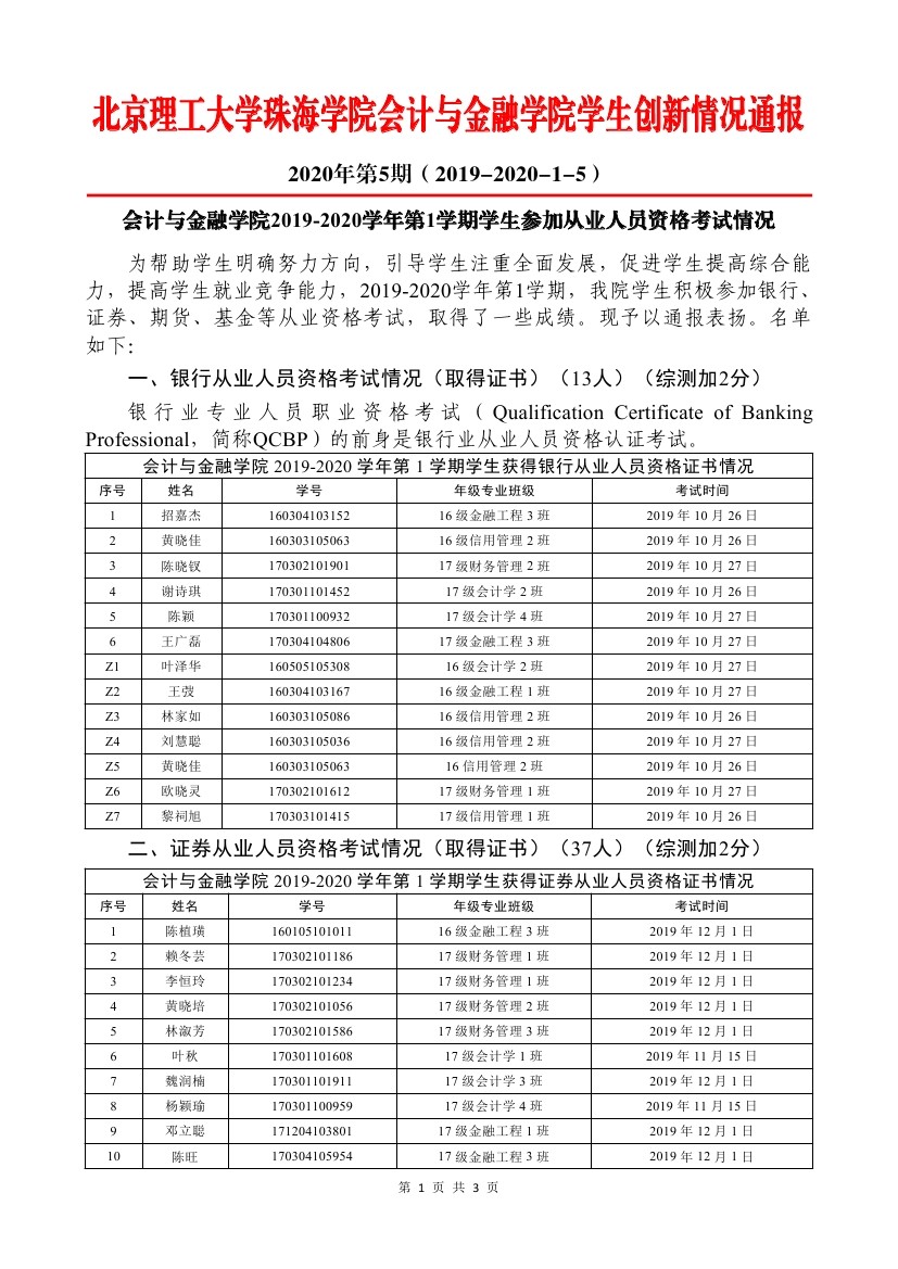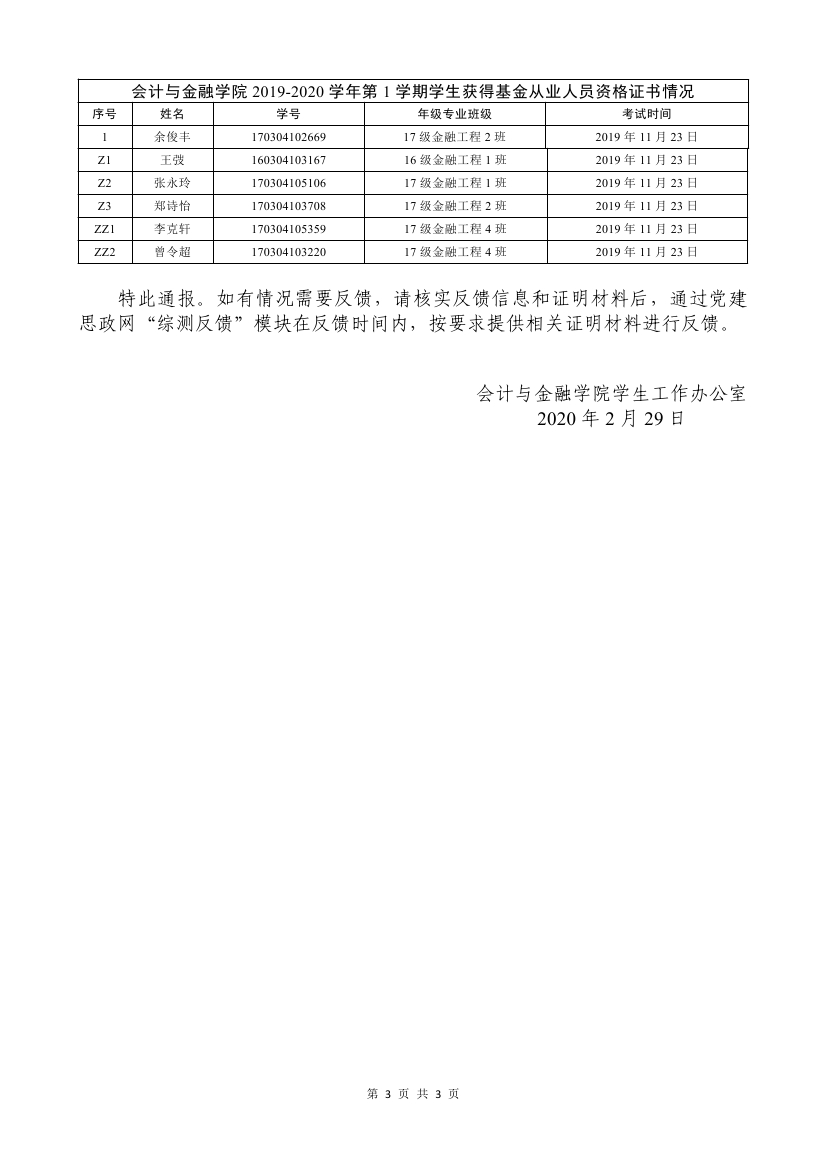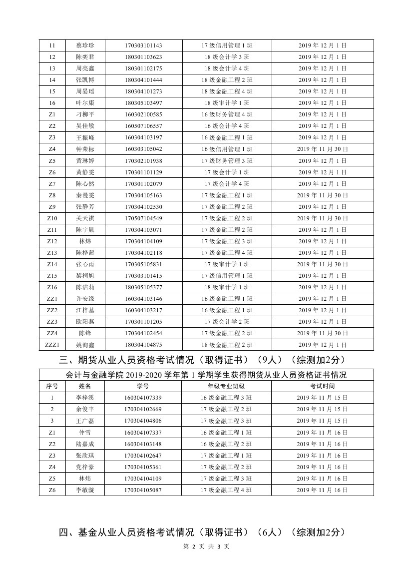 2019-2020学年第1学期员工参加从业人员资格考试情况