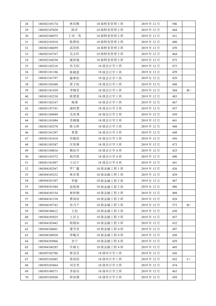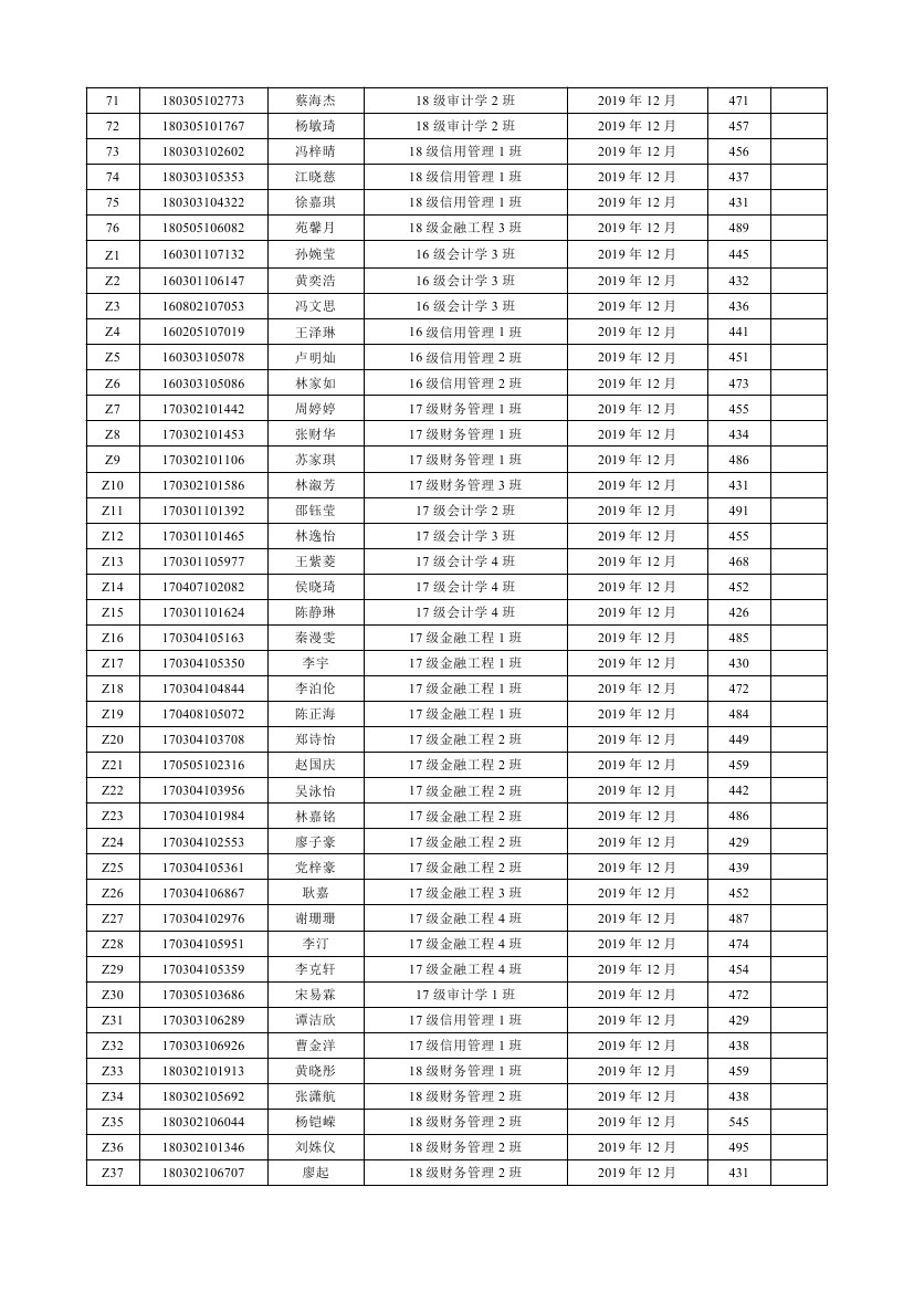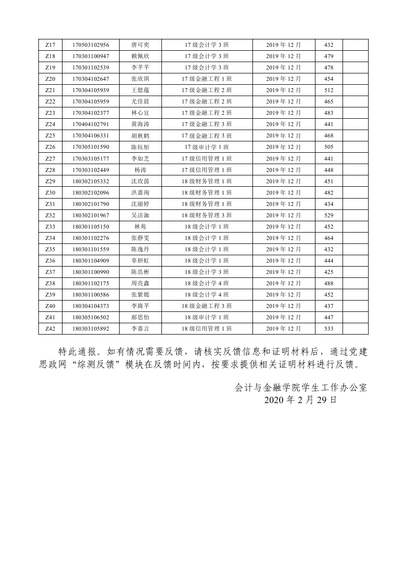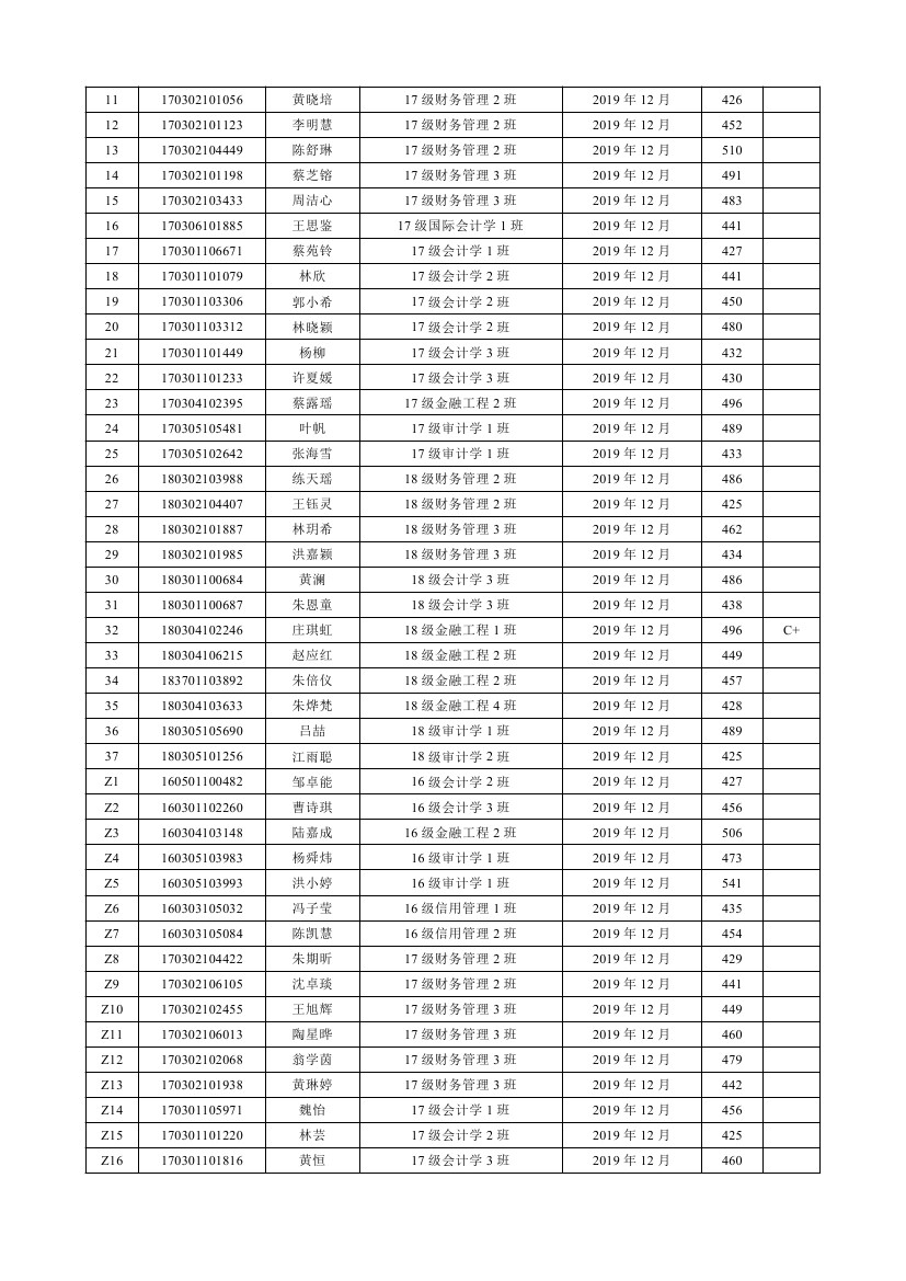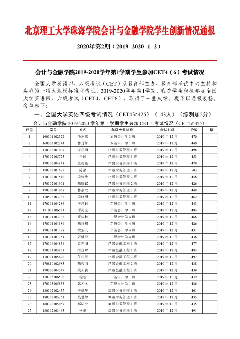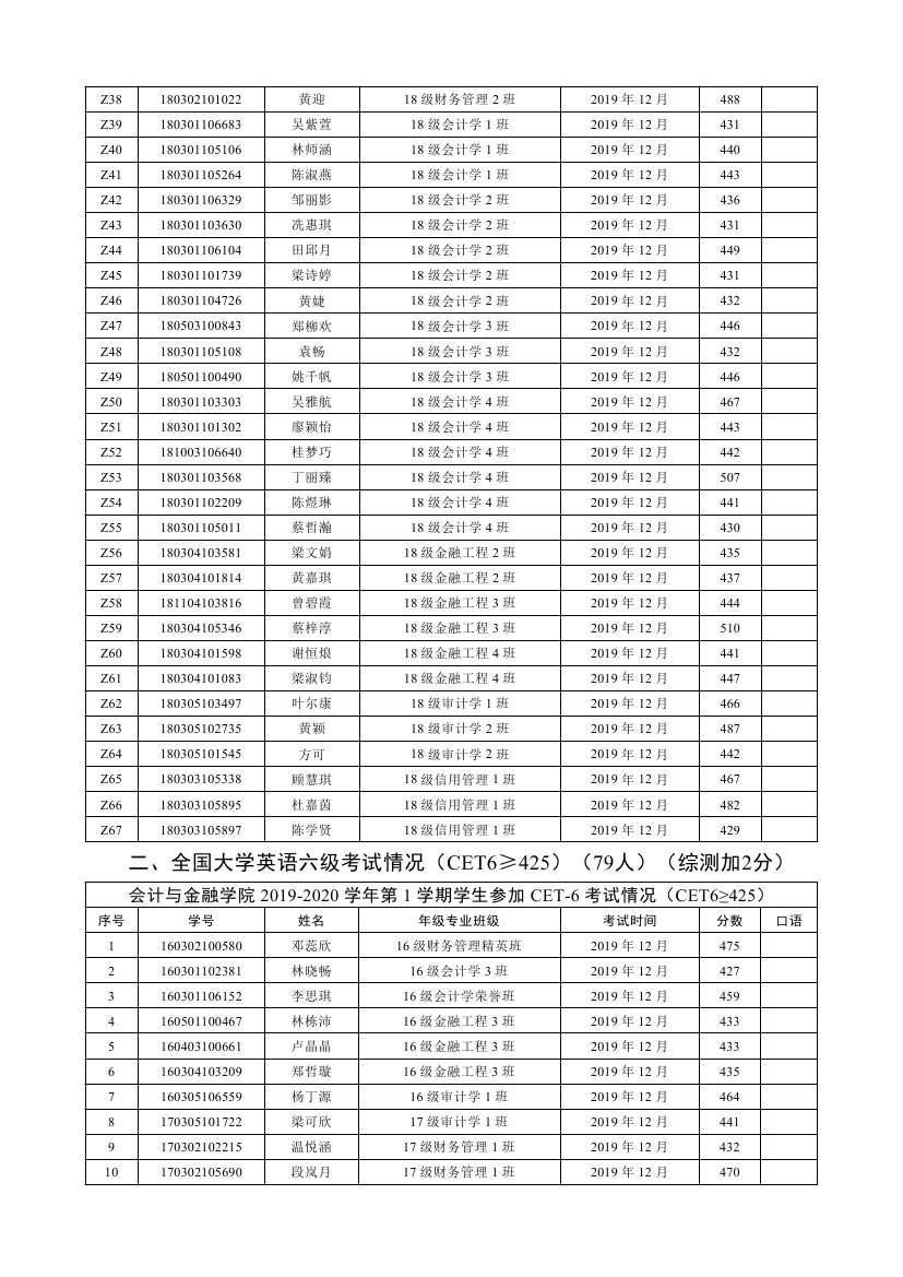 2019-2020学年第1学期参加CET4(6)考试情况