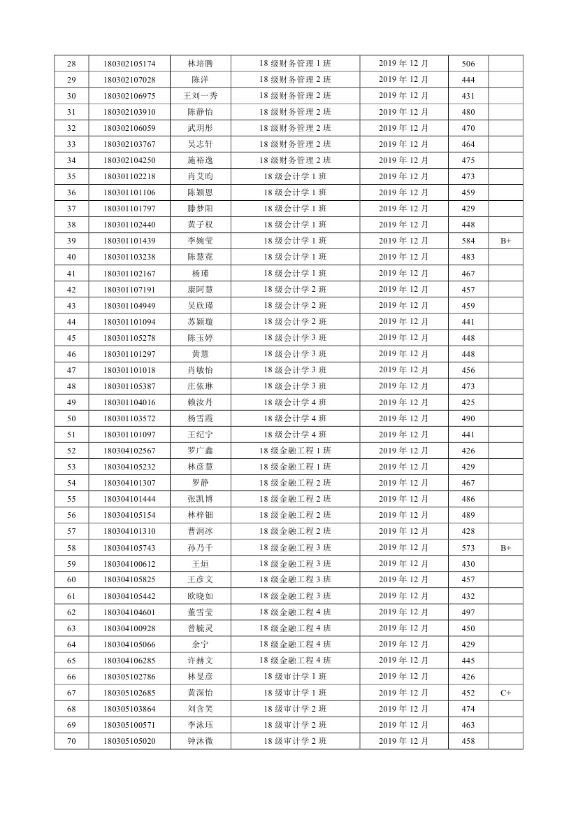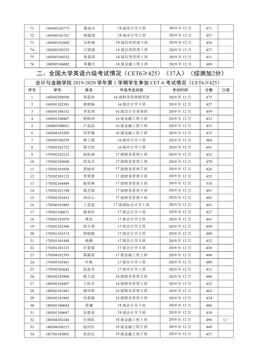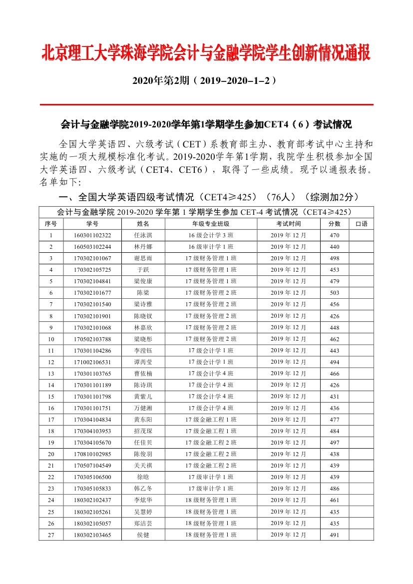 2019-2020学年第1学期员工参加CET4(6)考试情况