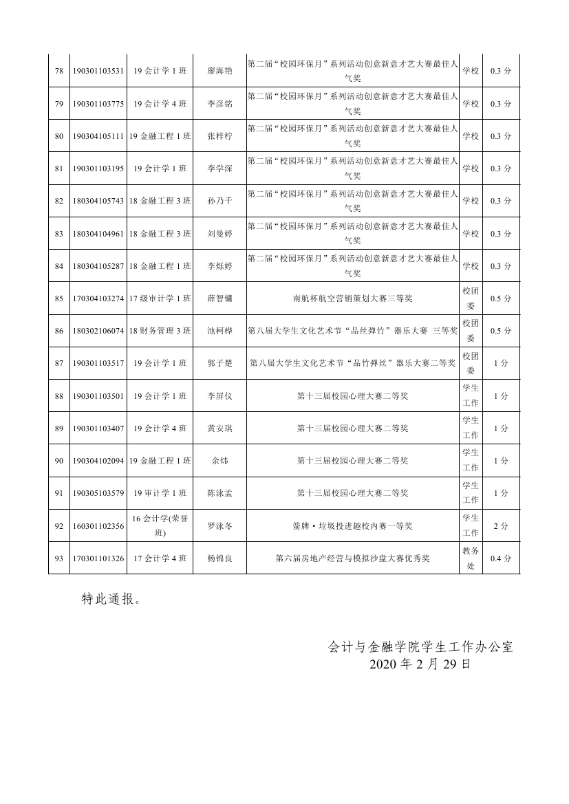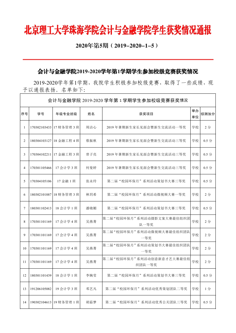2019-2020学年第1学期员工参加校级竞赛获奖情况