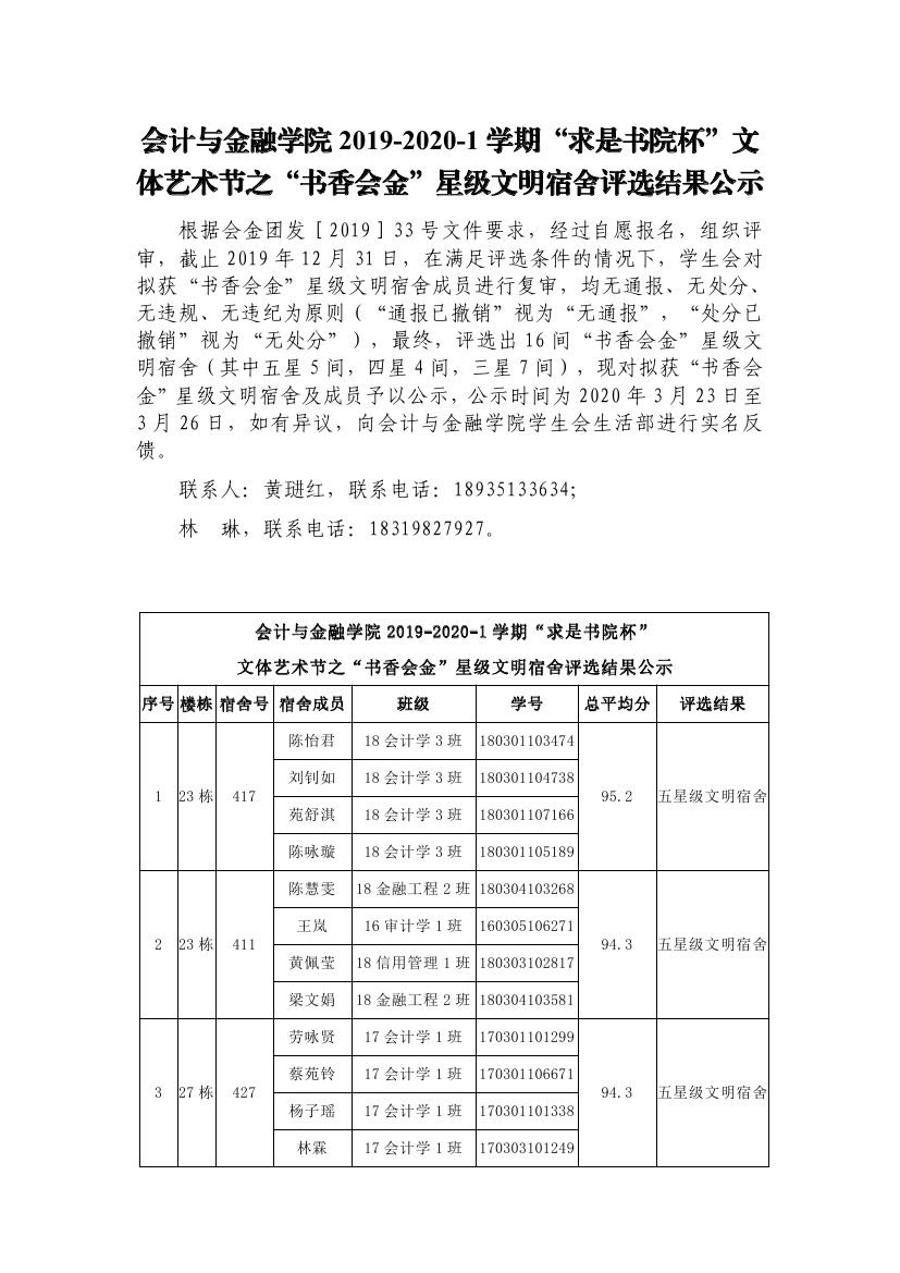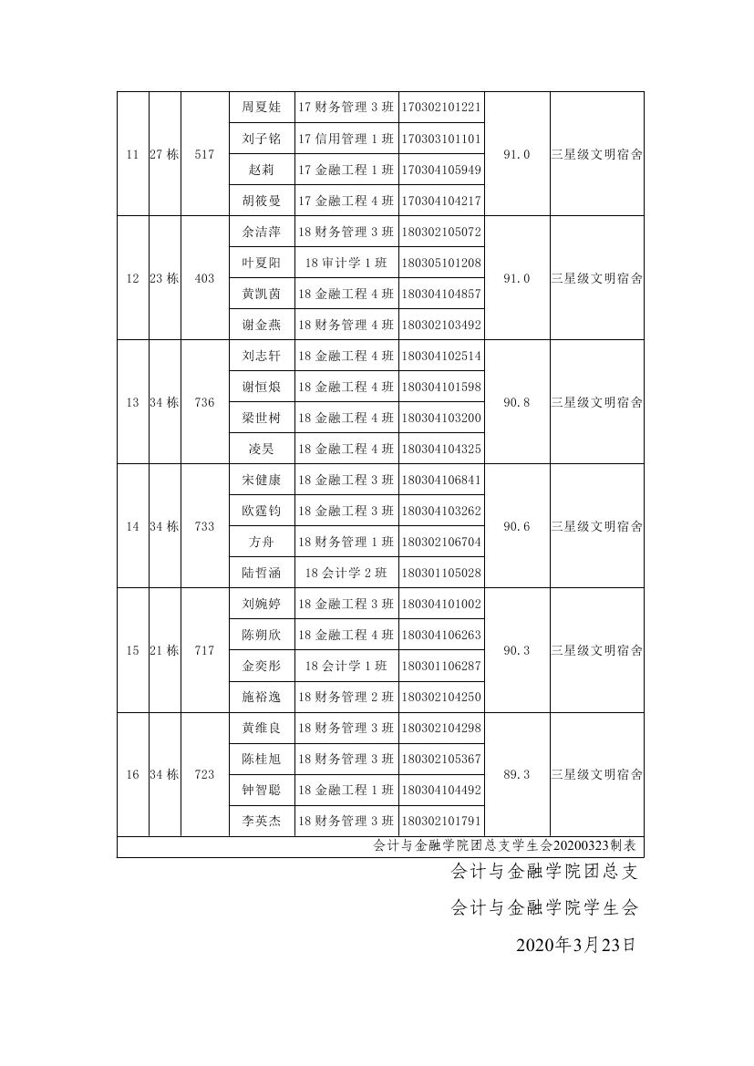 2019-2020-1学期“求是书院杯”文体艺术节之“书香会金”星级文明宿舍评选结果公示