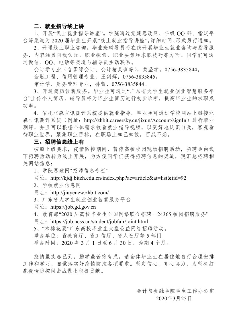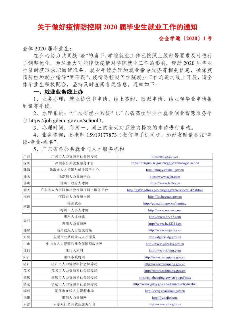 关于做好疫情防控期2020届毕业生就业工作的通知