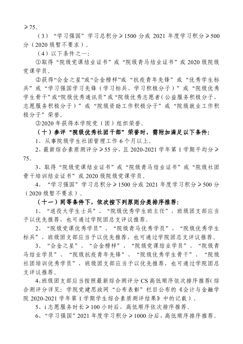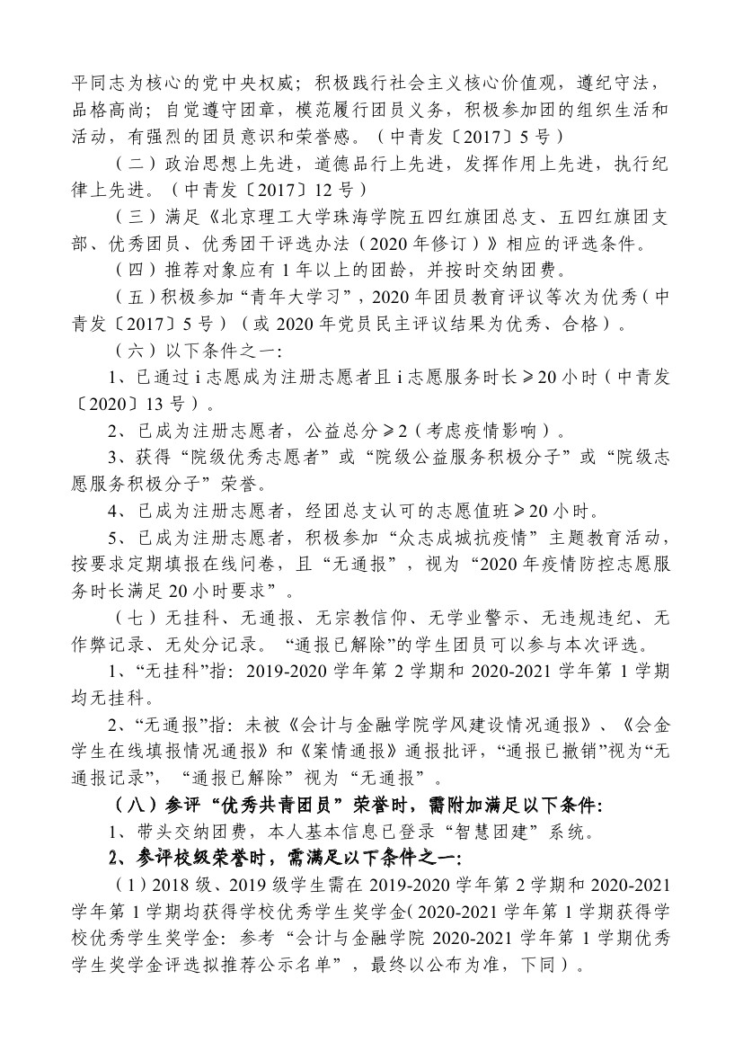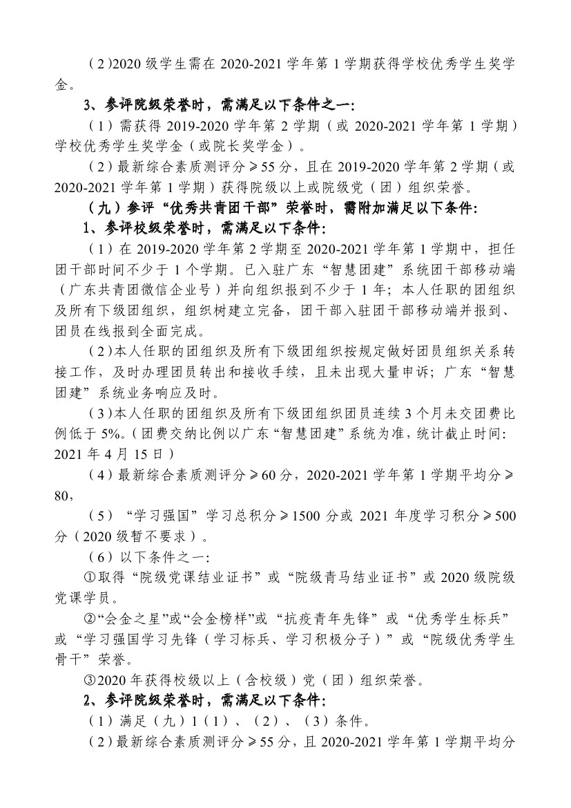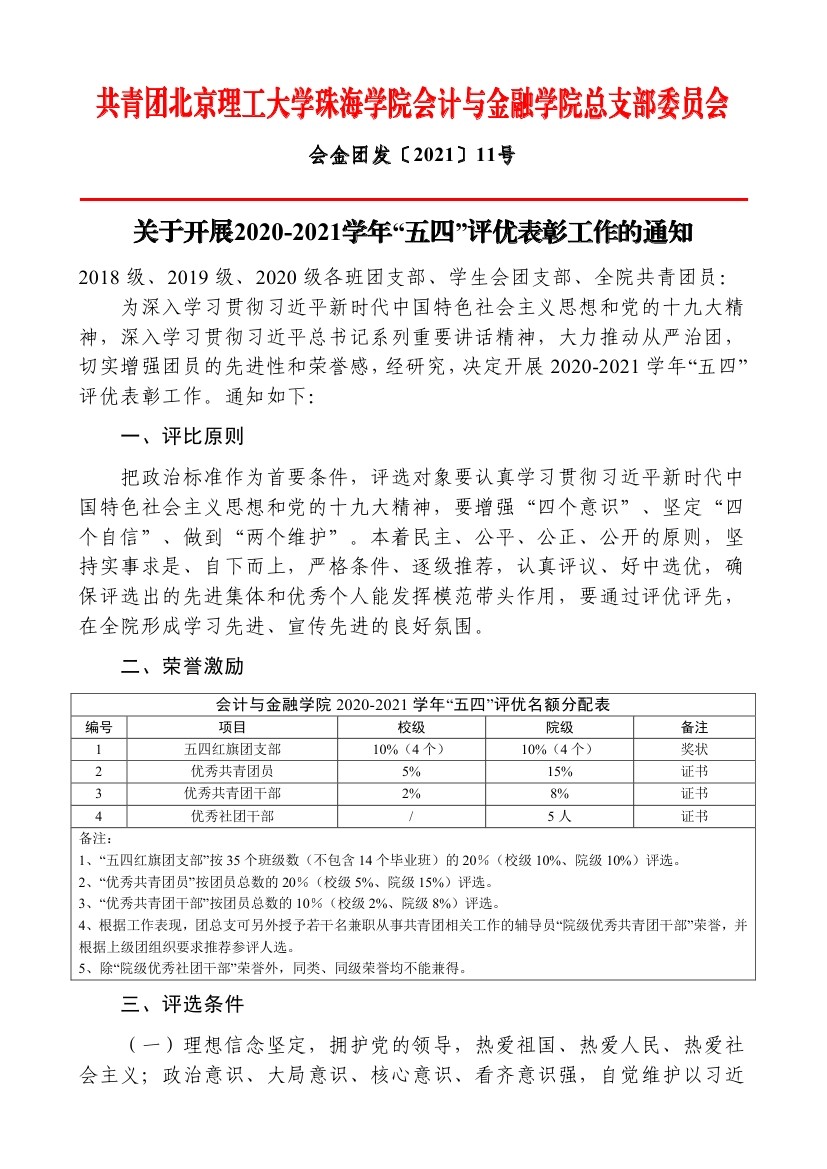 关于开展2020-2021学年“五四”评优表彰工作的通知
