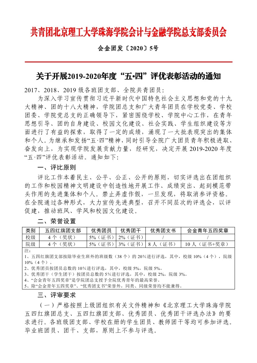 关于开展2019-2020年度“五·四”评选表彰活动的通知