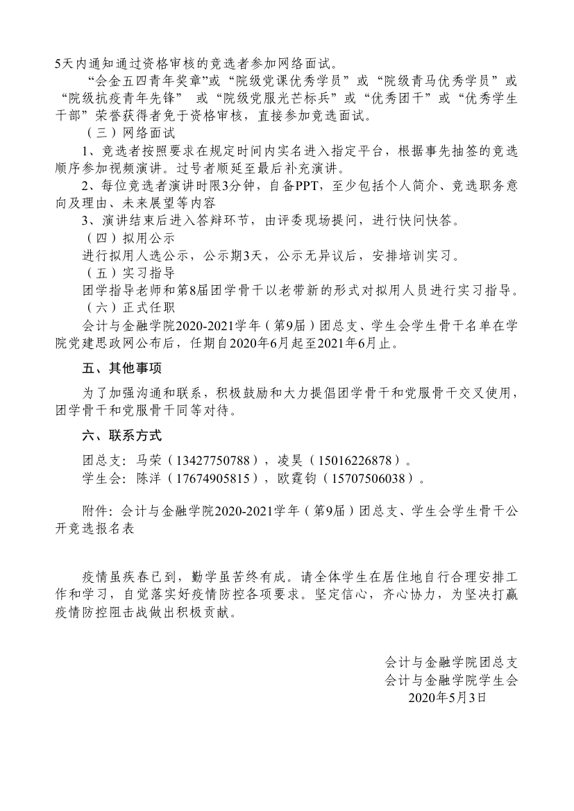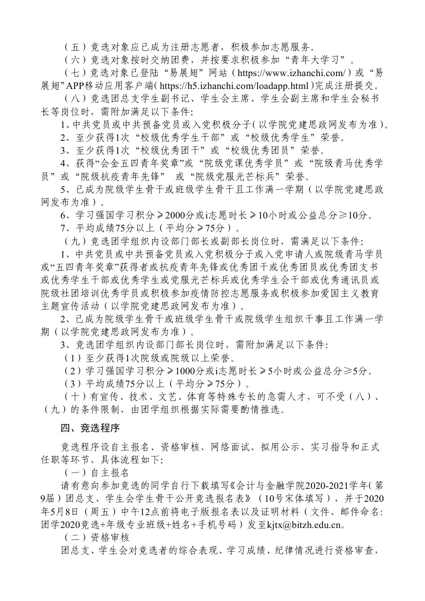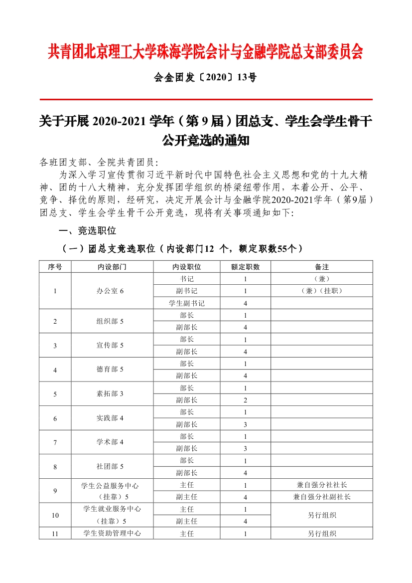 关于开展2020-2021学年(第9届)团总支、员工会员工骨干公开竞选的通知