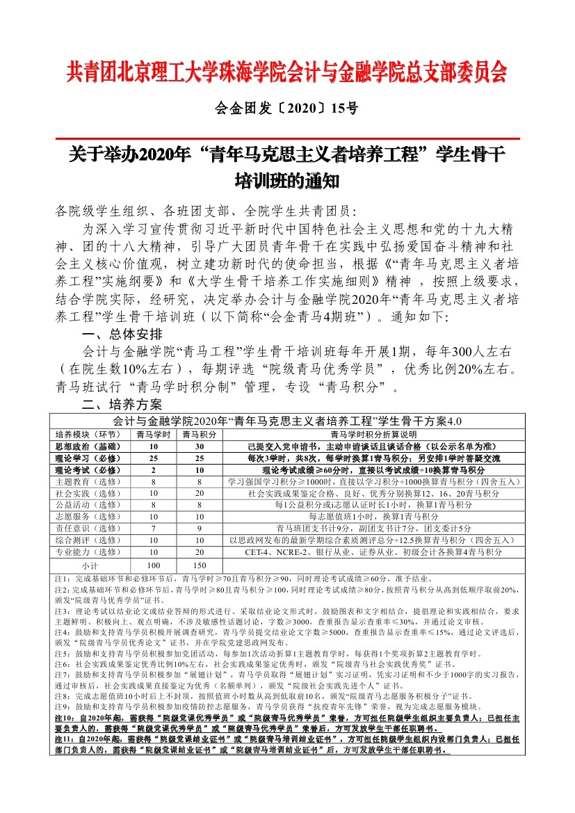 关于举办2020年“青年马克思主义者培养工程”员工骨干培训班的通知