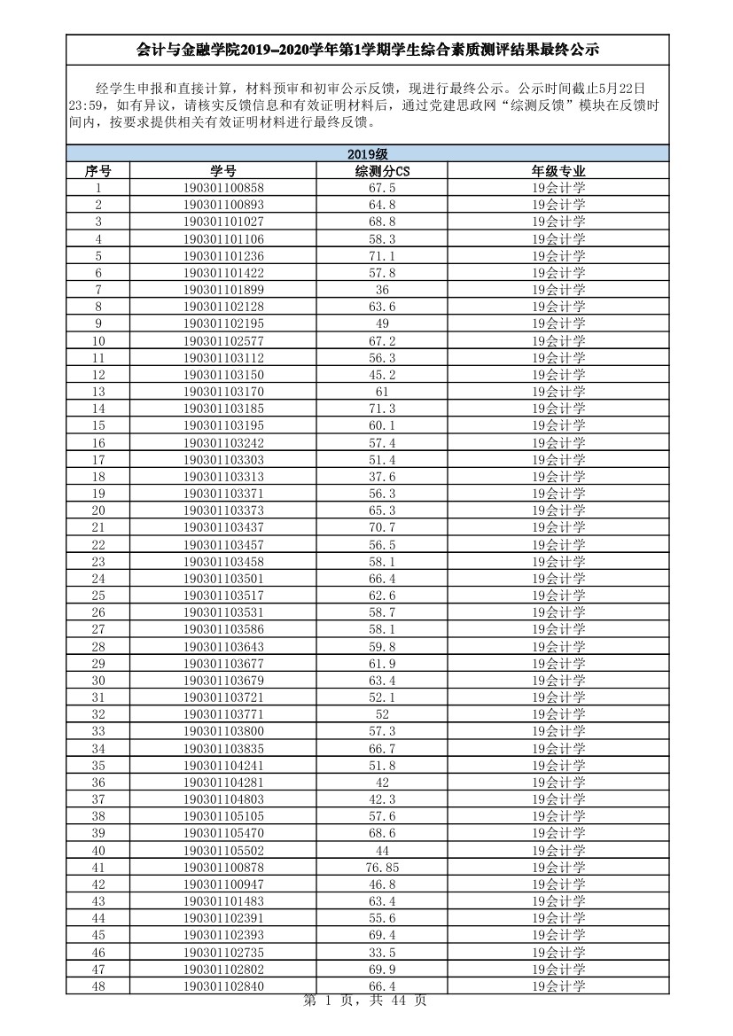 2019一2020学年第1学期员工综合素质测评结果最终公示