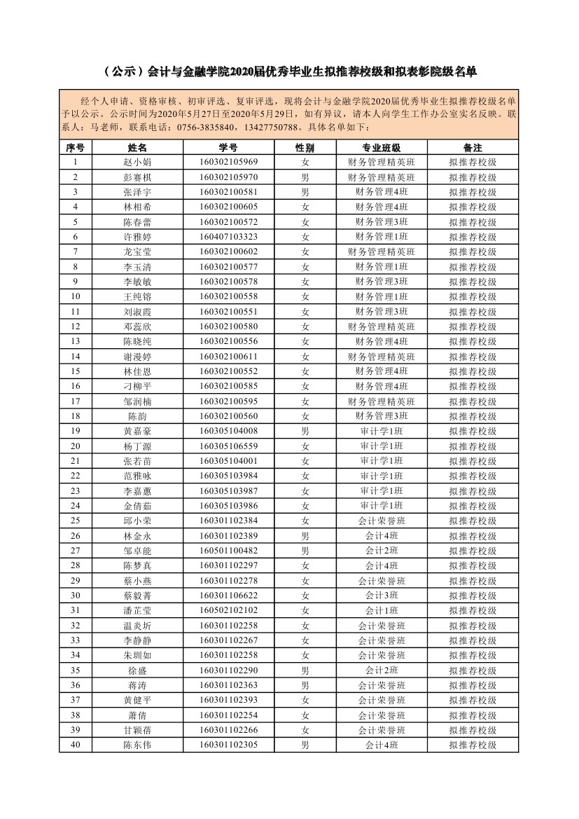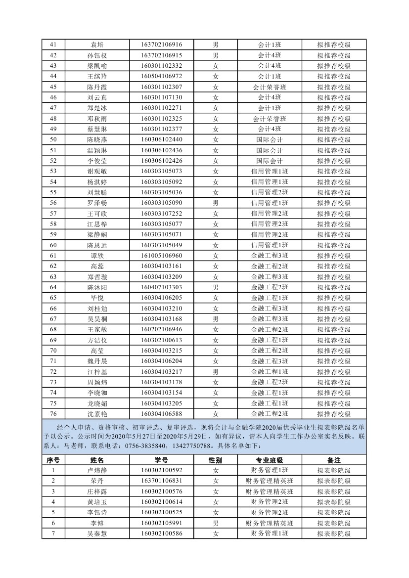 (公示)2020届优秀毕业生拟推荐校级和拟表彰院级名单