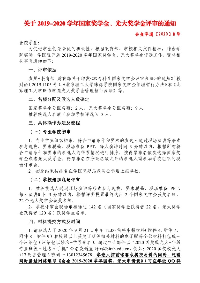 关于2019-2020学年国家奖学金、光大奖学金评审的通知