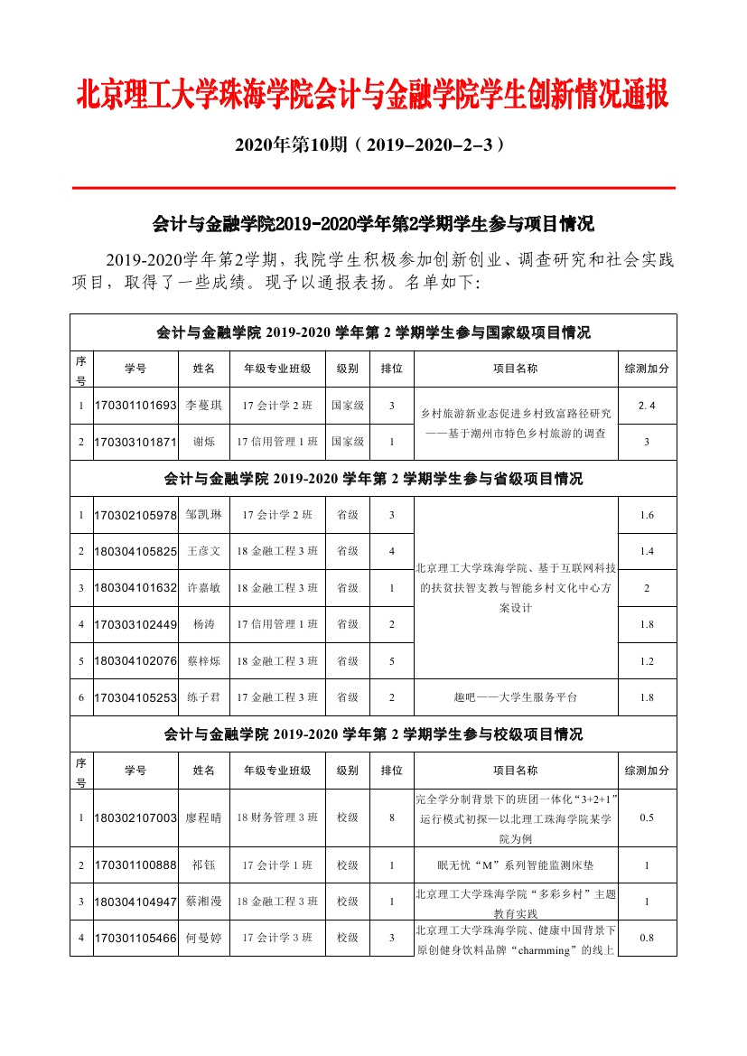 2019-2020学年2学期员工参与项目情况