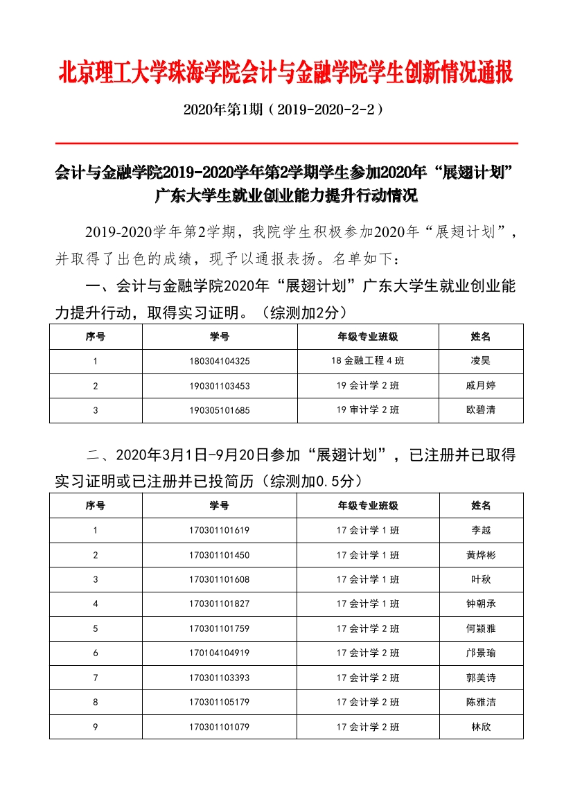 2019-2020学年第2学期员工参加2020年“展翅计划”广东老员工就业创业能力提升行动情况