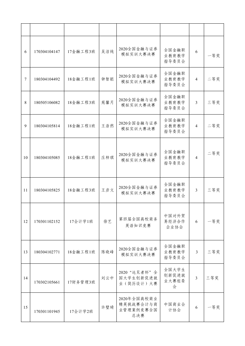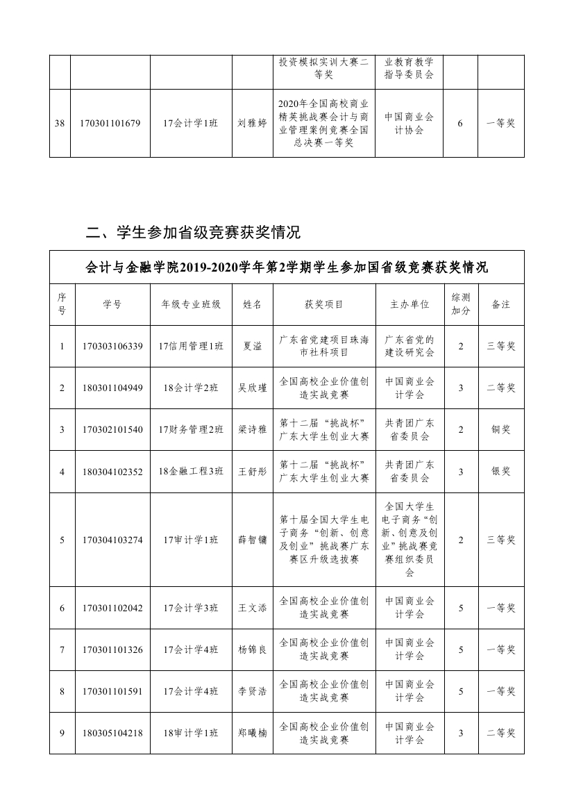 2019-2020学年第2学期员工参加校级以上竞赛获奖情况
