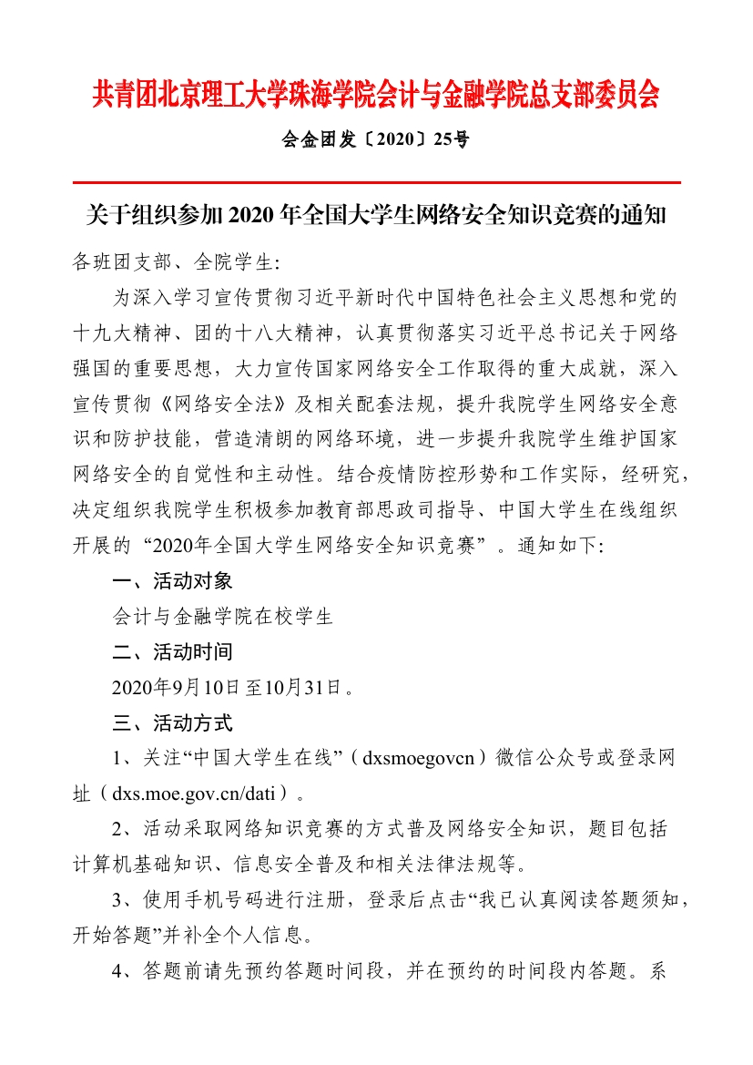 关于组织参加2020年全国老员工网络安全知识竞赛的通知