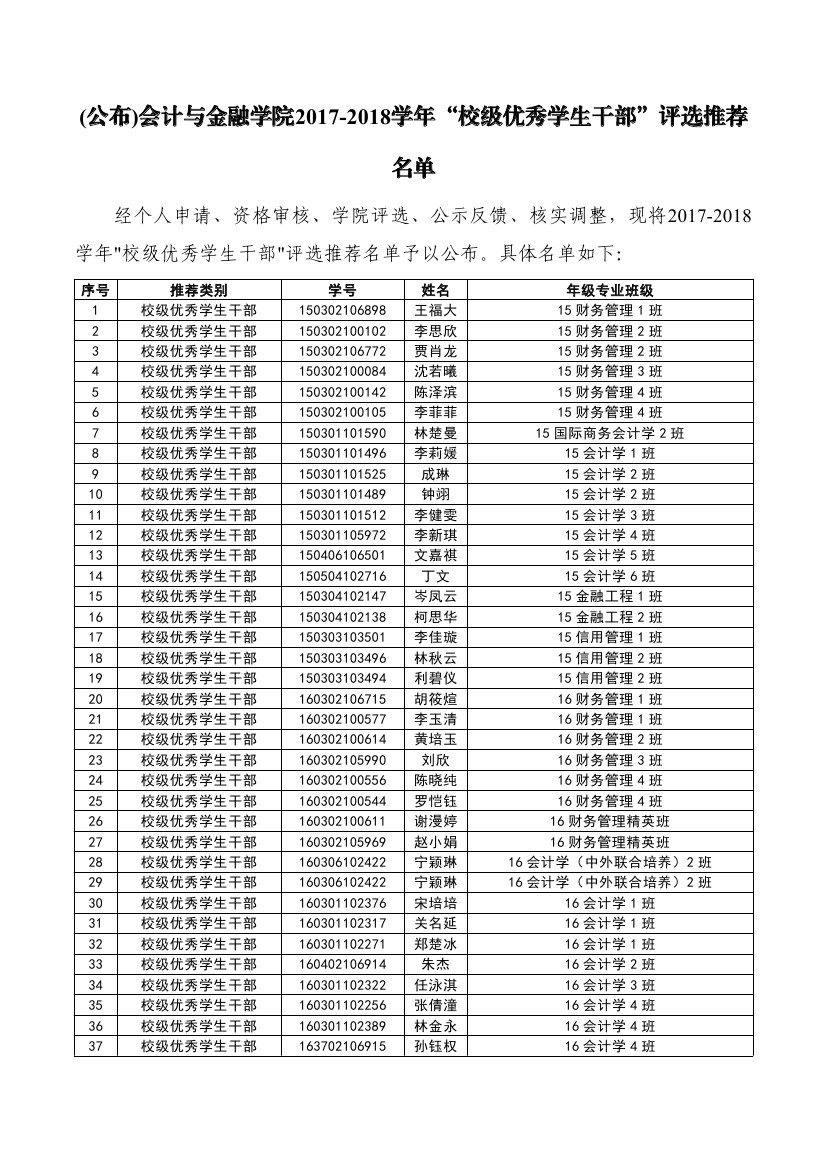 (公布)2017-2018学年“校级优秀员工干部”评选推荐名单